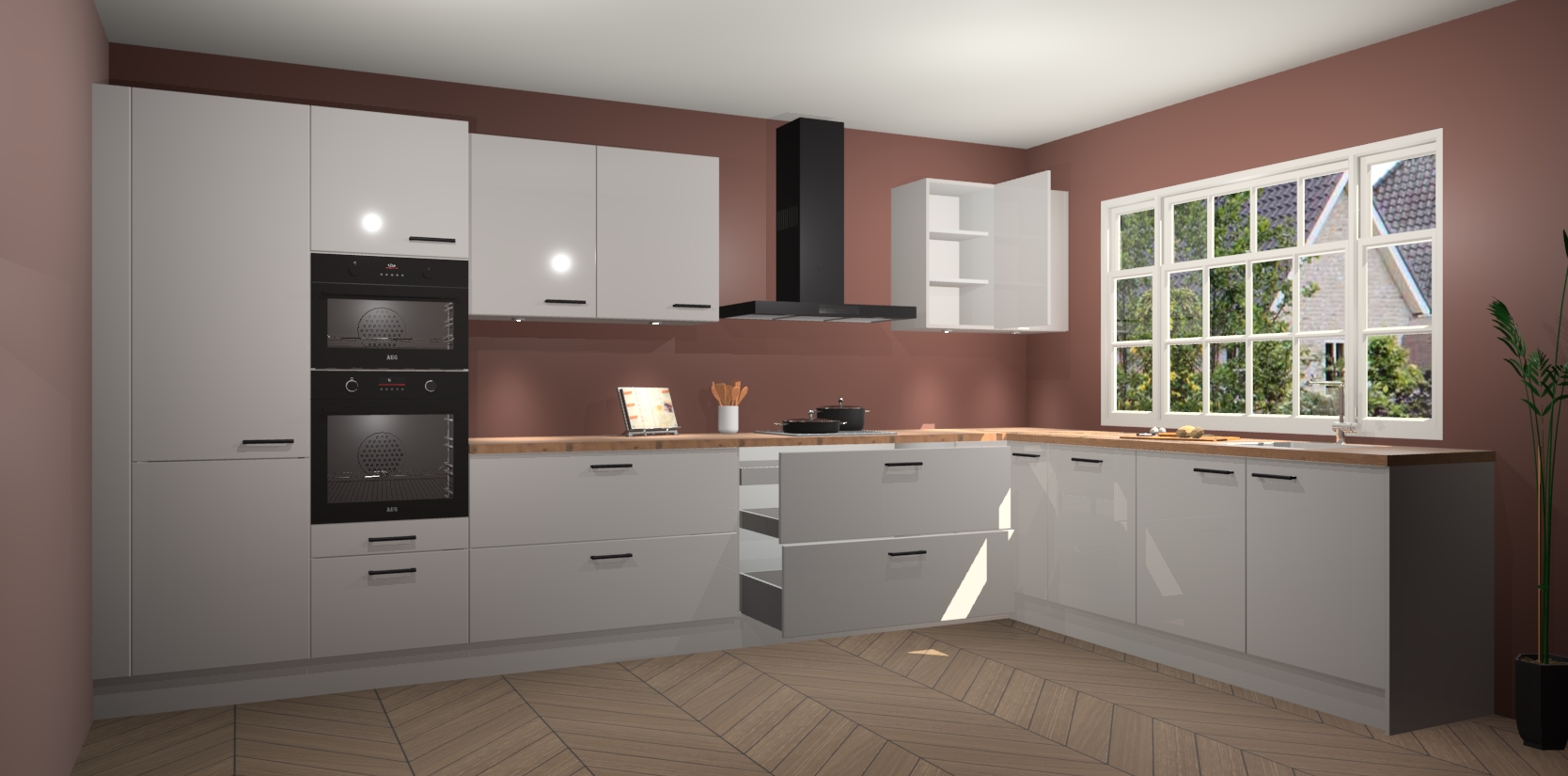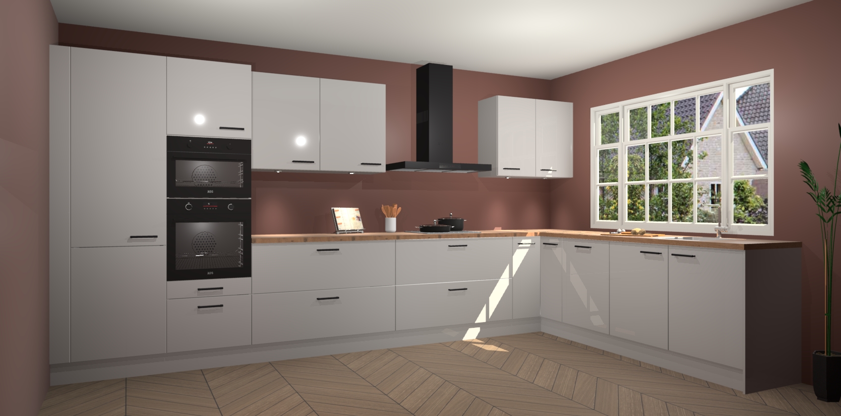 Kom dichtbij de perfecte keuken van uw dromen met de zijdegrijze hoogglans keuken Graz. Met een prachtige houtlook en eigentijds ontwerp, straalt deze keuken warmte en sfeer uit. Of u nu liefhebber bent van traditionele of moderne stijlen, er is genoeg ruimte om aan al uw behoeften te voldoen.