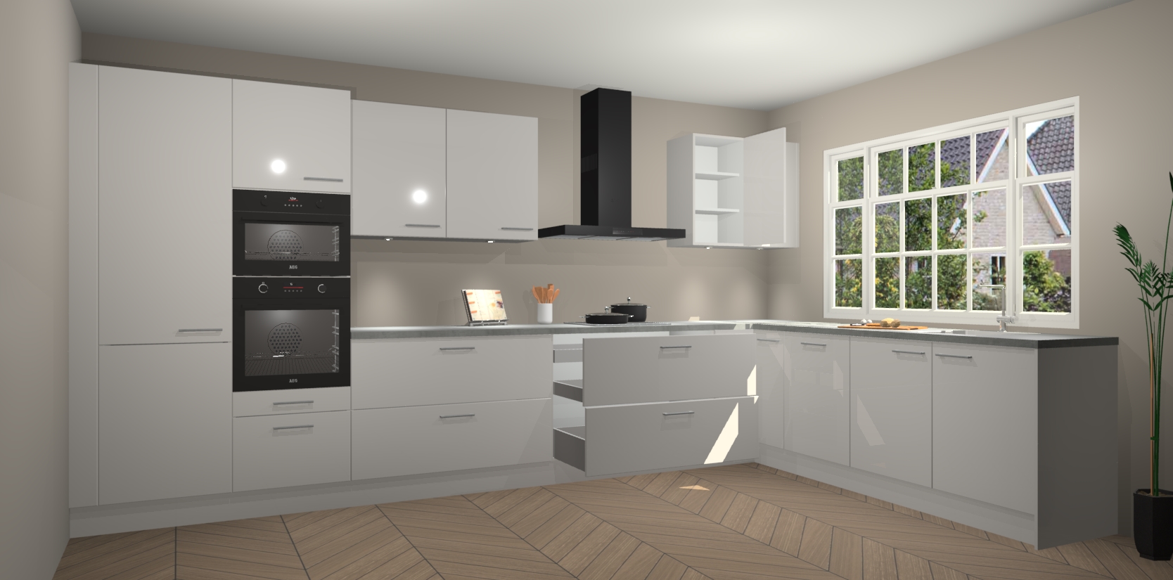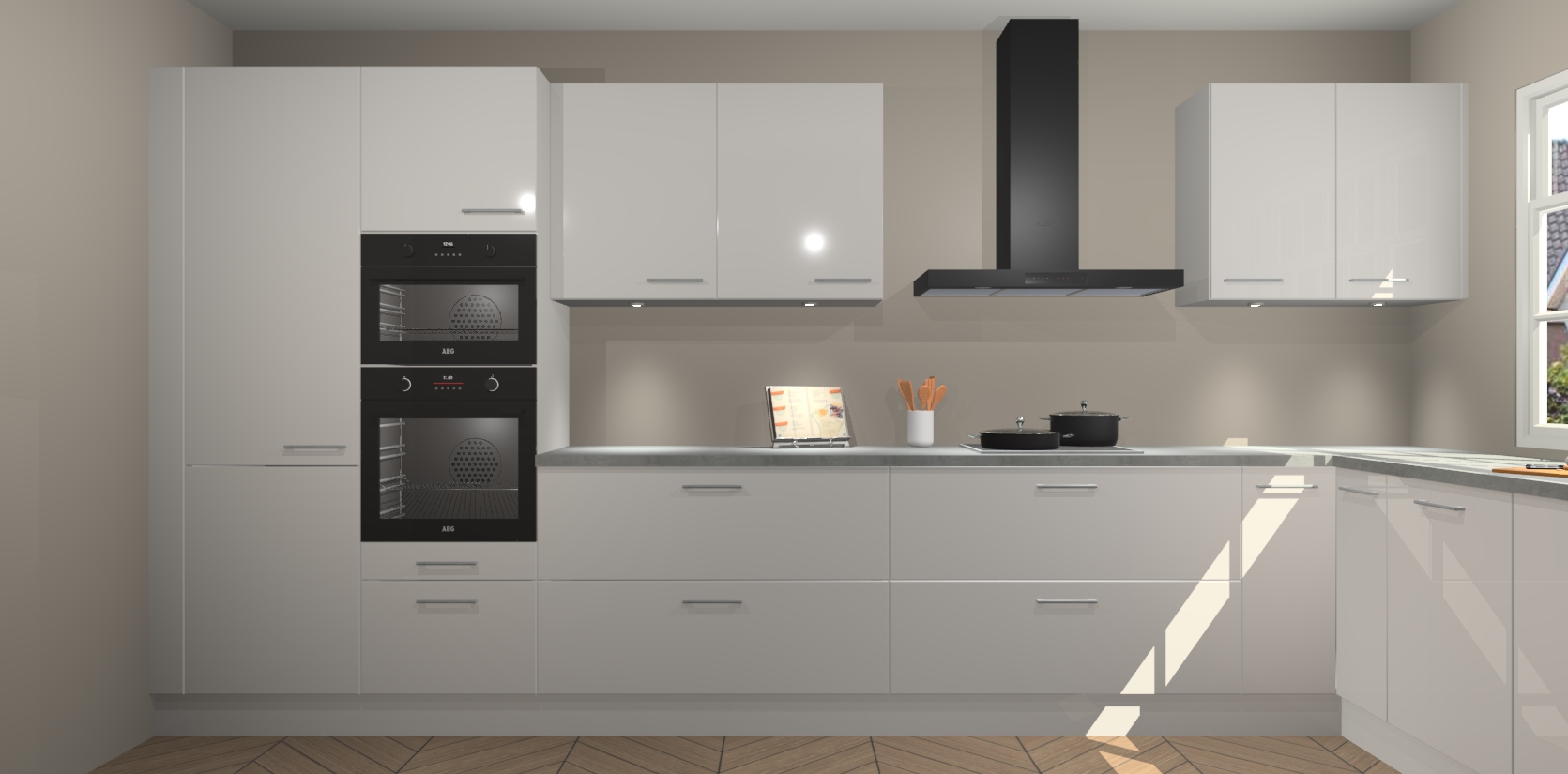Kom dichtbij de perfecte keuken van uw dromen met de zijdegrijze hoogglans keuken Graz. Met een prachtige houtlook en eigentijds ontwerp, straalt deze keuken warmte en sfeer uit. Of u nu liefhebber bent van traditionele of moderne stijlen, er is genoeg ruimte om aan al uw behoeften te voldoen.