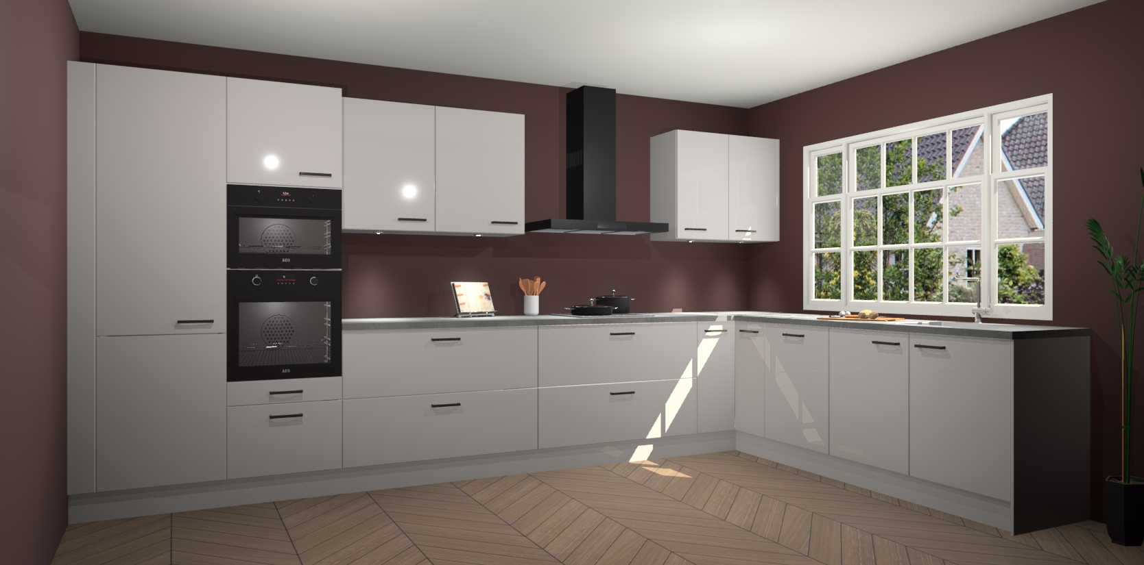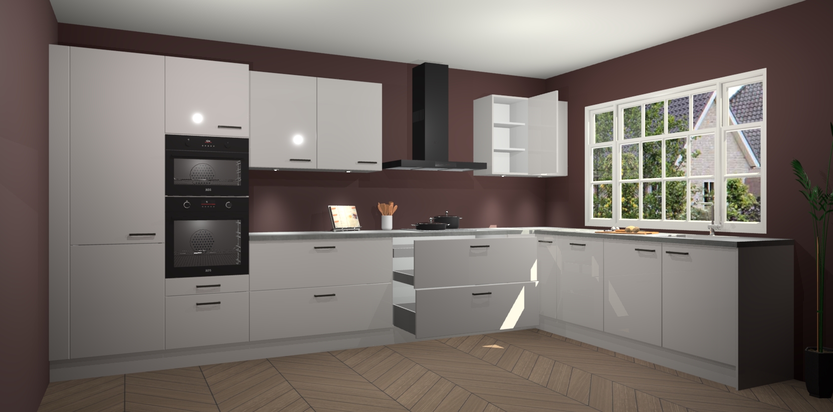 Kom dichtbij de perfecte keuken van uw dromen met de zijdegrijze hoogglans keuken Graz. Met een prachtige houtlook en eigentijds ontwerp, straalt deze keuken warmte en sfeer uit. Of u nu liefhebber bent van traditionele of moderne stijlen, er is genoeg ruimte om aan al uw behoeften te voldoen.