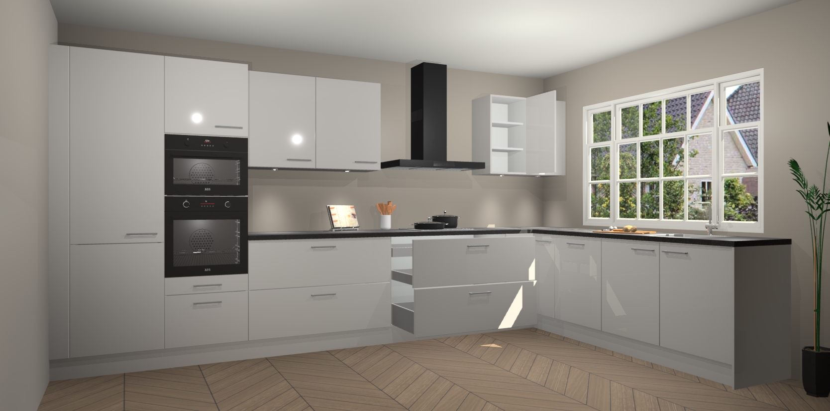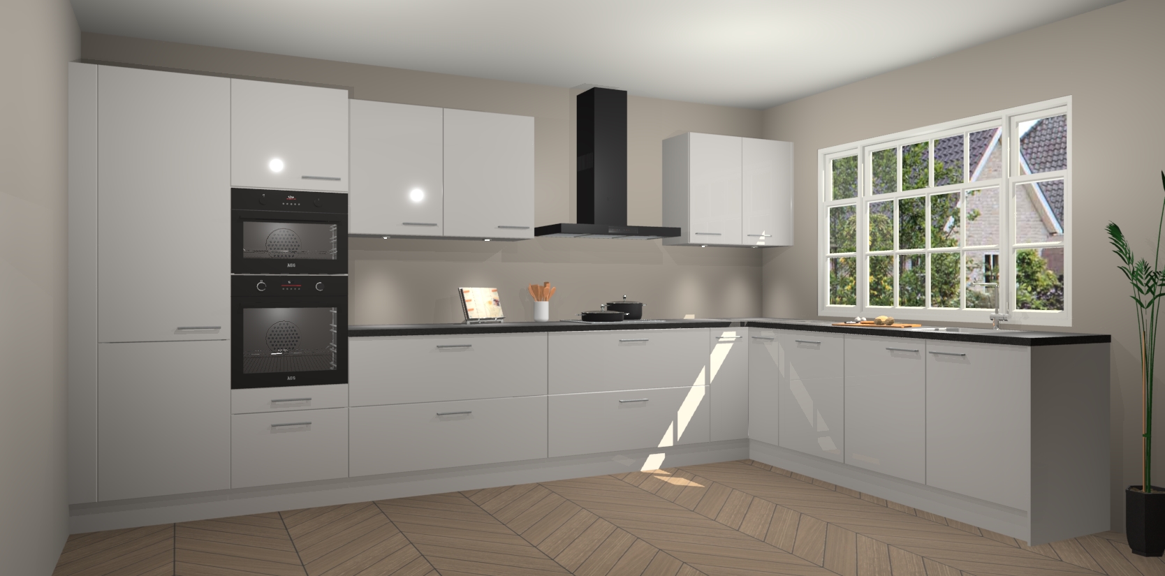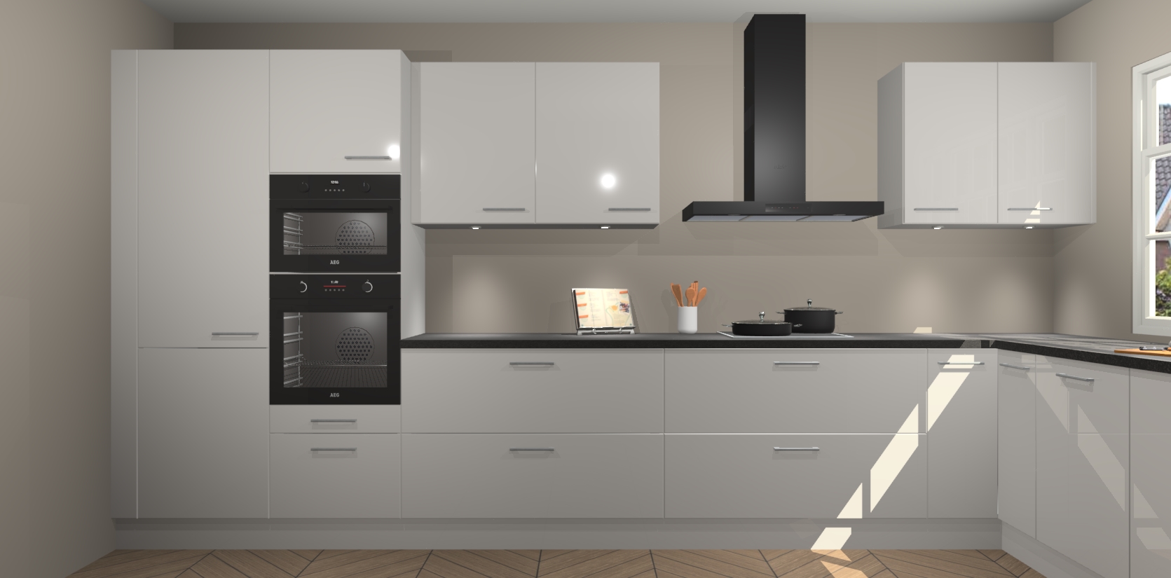 Kom dichtbij de perfecte keuken van uw dromen met de zijdegrijze hoogglans keuken Graz. Met een prachtige houtlook en eigentijds ontwerp, straalt deze keuken warmte en sfeer uit. Of u nu liefhebber bent van traditionele of moderne stijlen, er is genoeg ruimte om aan al uw behoeften te voldoen.