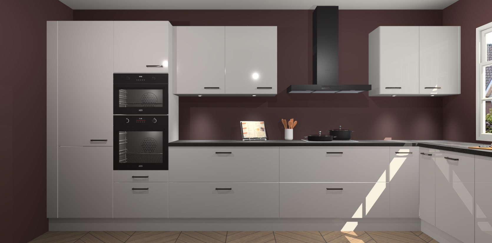 Kom dichtbij de perfecte keuken van uw dromen met de zijdegrijze hoogglans keuken Graz. Met een prachtige houtlook en eigentijds ontwerp, straalt deze keuken warmte en sfeer uit. Of u nu liefhebber bent van traditionele of moderne stijlen, er is genoeg ruimte om aan al uw behoeften te voldoen.
