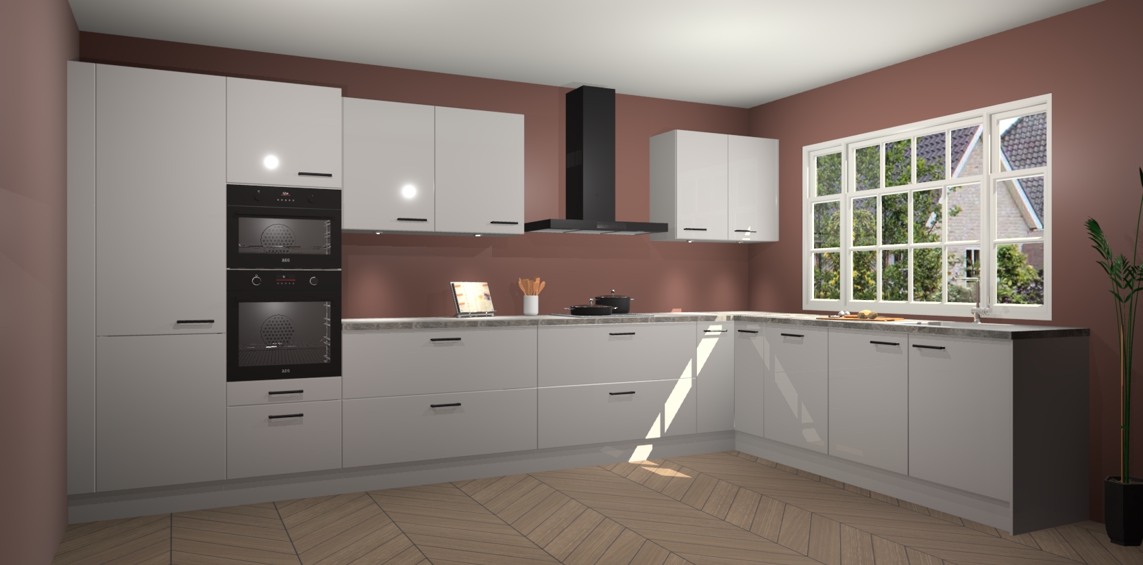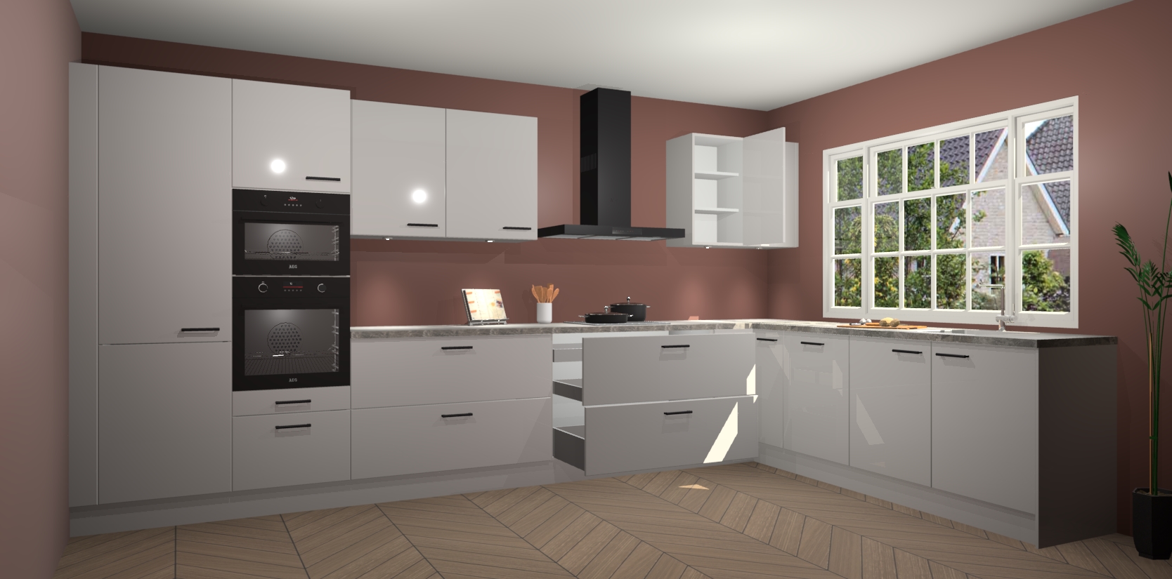 Kom dichtbij de perfecte keuken van uw dromen met de zijdegrijze hoogglans keuken Graz. Met een prachtige houtlook en eigentijds ontwerp, straalt deze keuken warmte en sfeer uit. Of u nu liefhebber bent van traditionele of moderne stijlen, er is genoeg ruimte om aan al uw behoeften te voldoen.
