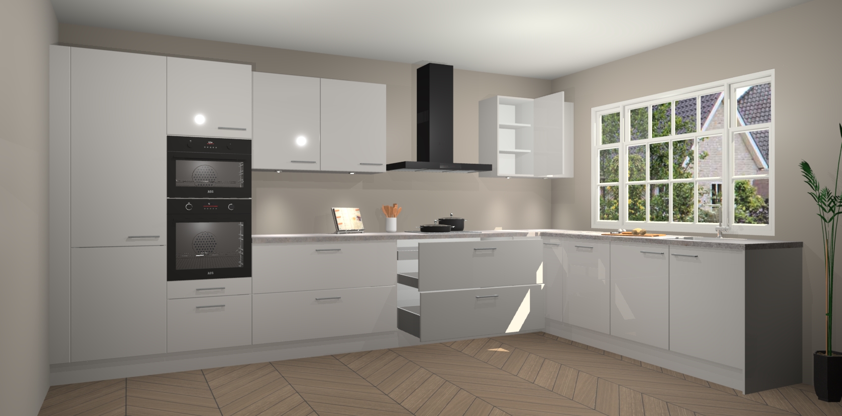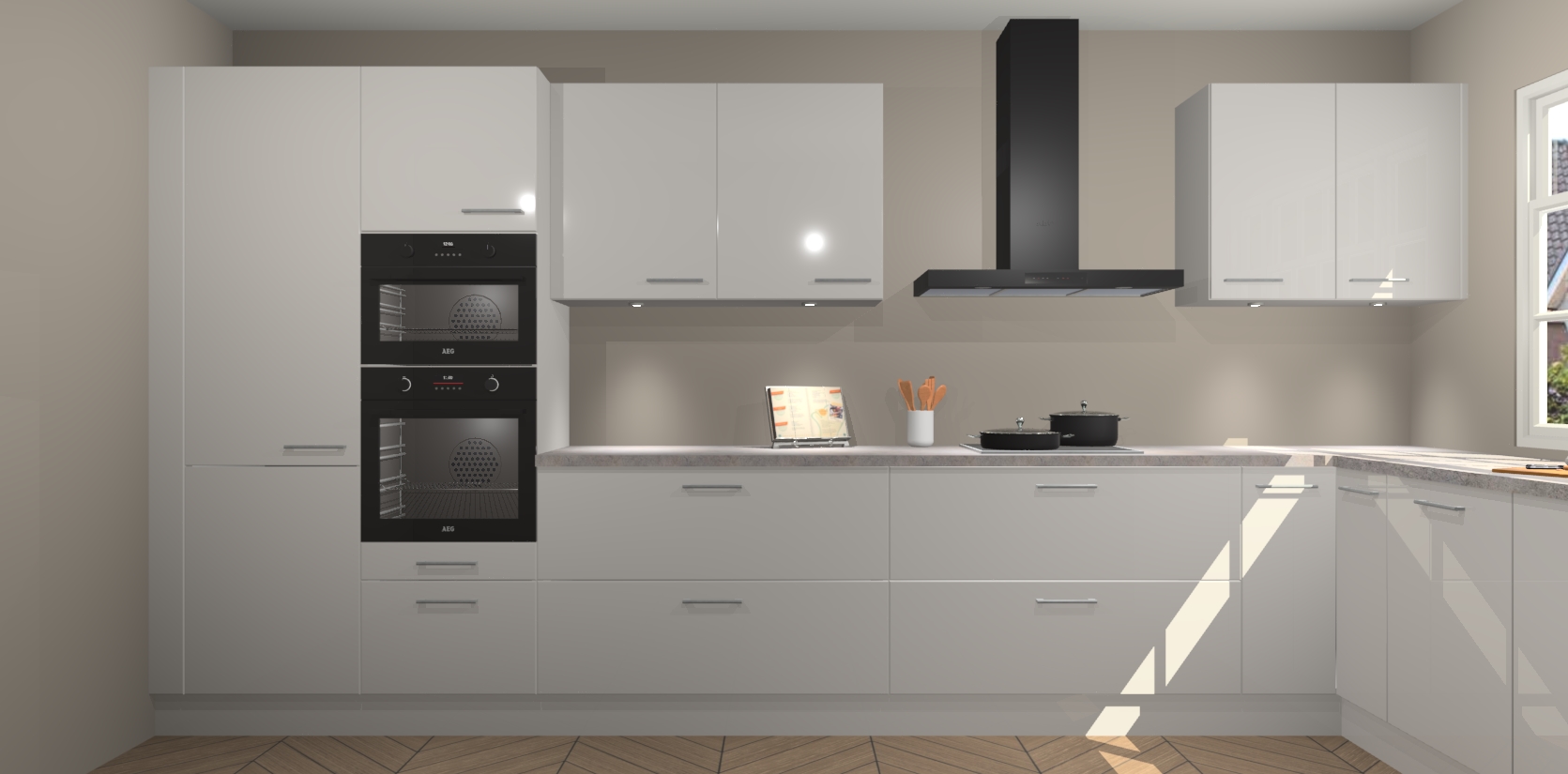 Kom dichtbij de perfecte keuken van uw dromen met de zijdegrijze hoogglans keuken Graz. Met een prachtige houtlook en eigentijds ontwerp, straalt deze keuken warmte en sfeer uit. Of u nu liefhebber bent van traditionele of moderne stijlen, er is genoeg ruimte om aan al uw behoeften te voldoen.