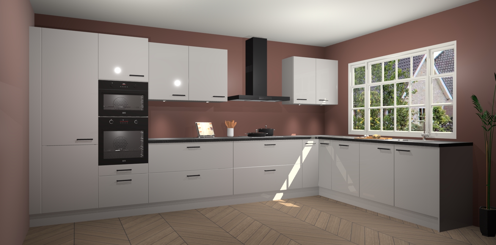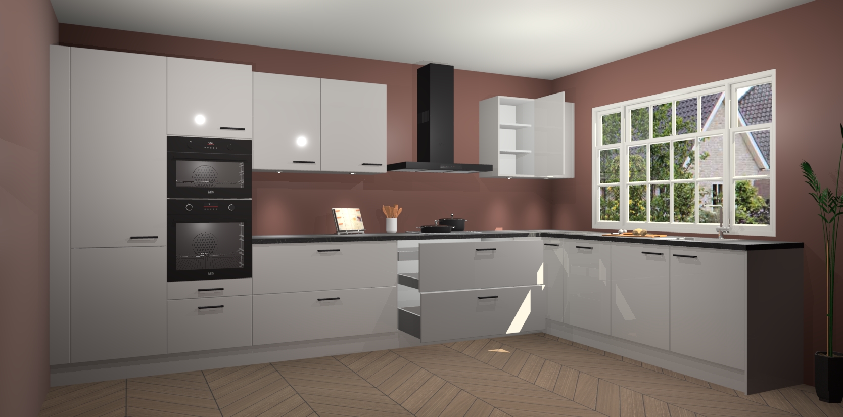 Kom dichtbij de perfecte keuken van uw dromen met de zijdegrijze hoogglans keuken Graz. Met een prachtige houtlook en eigentijds ontwerp, straalt deze keuken warmte en sfeer uit. Of u nu liefhebber bent van traditionele of moderne stijlen, er is genoeg ruimte om aan al uw behoeften te voldoen.