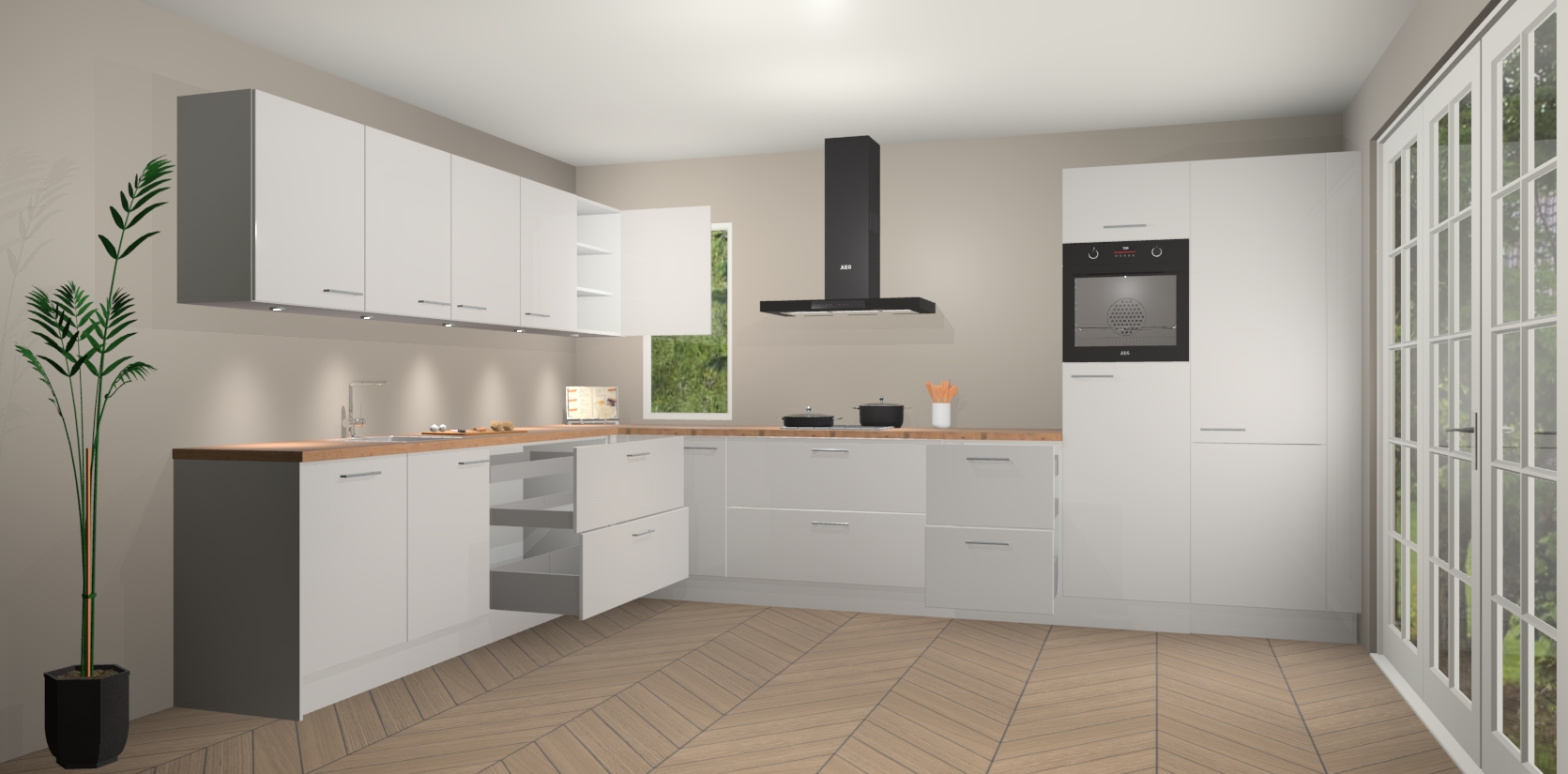 Inclusief plinten, stelpoten en werkblad