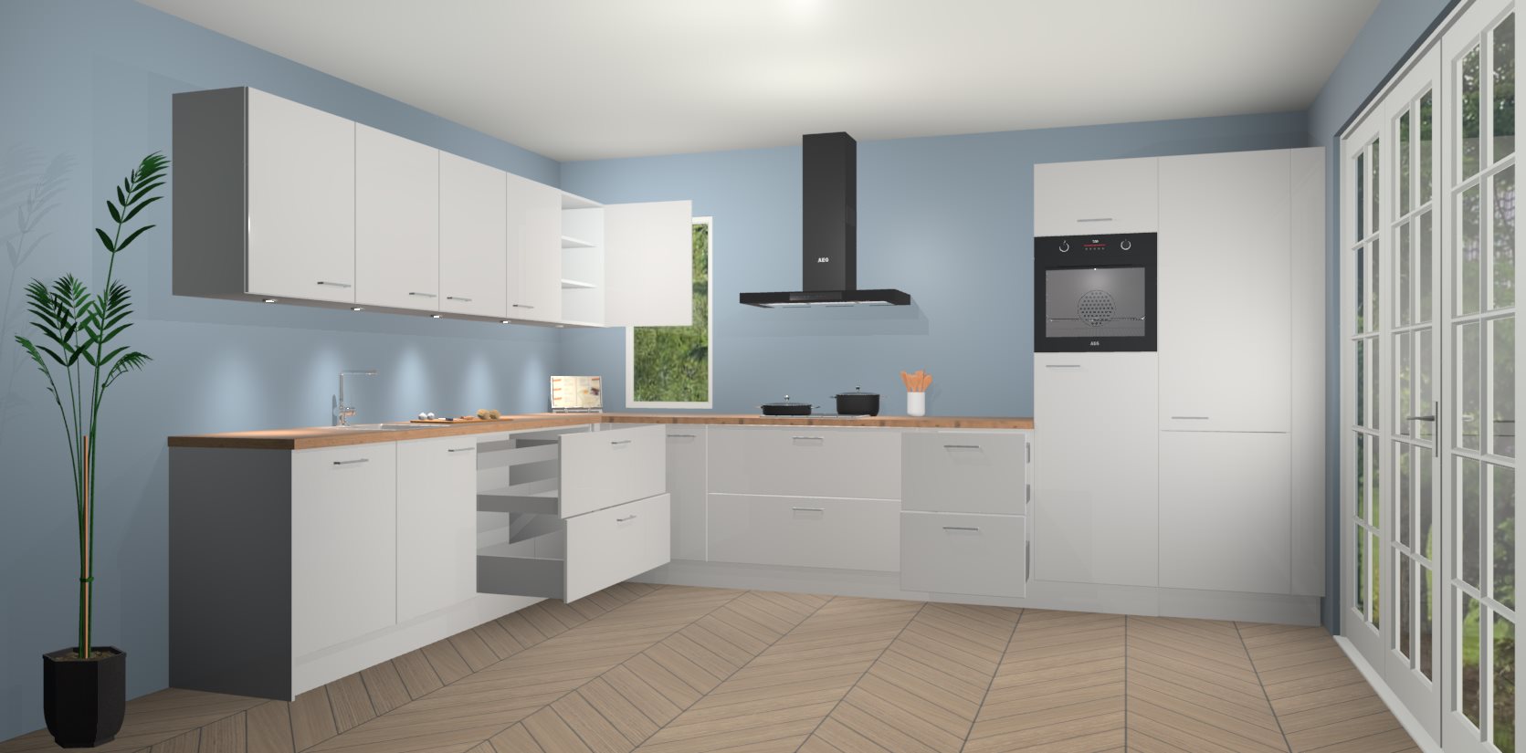 Inclusief plinten, stelpoten en werkblad