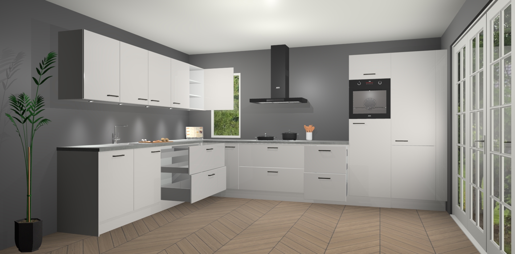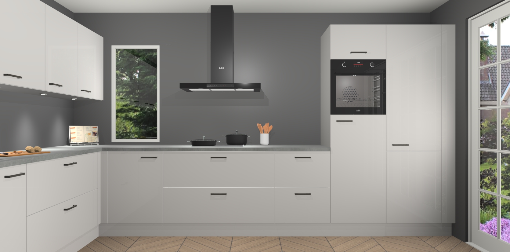 Heeft u nog apparatuur nodig? Geen probleem: de zijdegrijze hoogglans keuken Harare bevat vijf ingebouwde apparaten - een oven, inductiekookplaat, afzuigkap, vaatwasser en koelkast - die gemakkelijk kunnen worden bijgewerkt naar AEG na bestelling. En als dat nog niet genoeg is; onze kasten worden pre-geassembleerd geleverd en zijn verkrijgbaar tegen een vastgeroeste lage prijs! U hoeft nooit meer te zoeken naar goede kwaliteit en service want onze producten hebben echt Duitse kwaliteit.