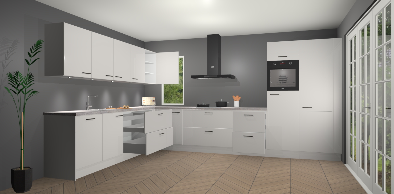 Heeft u nog apparatuur nodig? Geen probleem: de zijdegrijze hoogglans keuken Harare bevat vijf ingebouwde apparaten - een oven, inductiekookplaat, afzuigkap, vaatwasser en koelkast - die gemakkelijk kunnen worden bijgewerkt naar AEG na bestelling. En als dat nog niet genoeg is; onze kasten worden pre-geassembleerd geleverd en zijn verkrijgbaar tegen een vastgeroeste lage prijs! U hoeft nooit meer te zoeken naar goede kwaliteit en service want onze producten hebben echt Duitse kwaliteit.