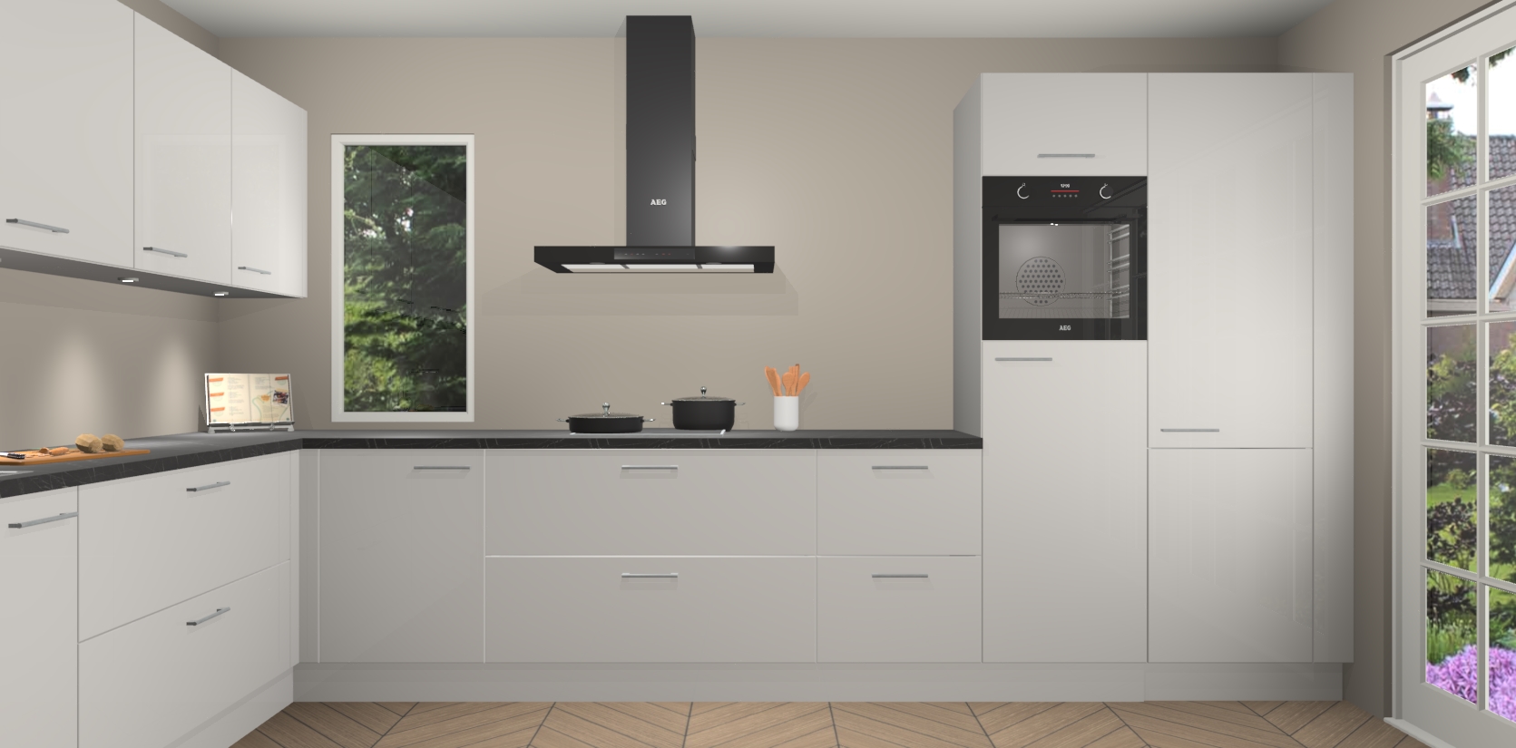 Heeft u nog apparatuur nodig? Geen probleem: de zijdegrijze hoogglans keuken Harare bevat vijf ingebouwde apparaten - een oven, inductiekookplaat, afzuigkap, vaatwasser en koelkast - die gemakkelijk kunnen worden bijgewerkt naar AEG na bestelling. En als dat nog niet genoeg is; onze kasten worden pre-geassembleerd geleverd en zijn verkrijgbaar tegen een vastgeroeste lage prijs! U hoeft nooit meer te zoeken naar goede kwaliteit en service want onze producten hebben echt Duitse kwaliteit.
