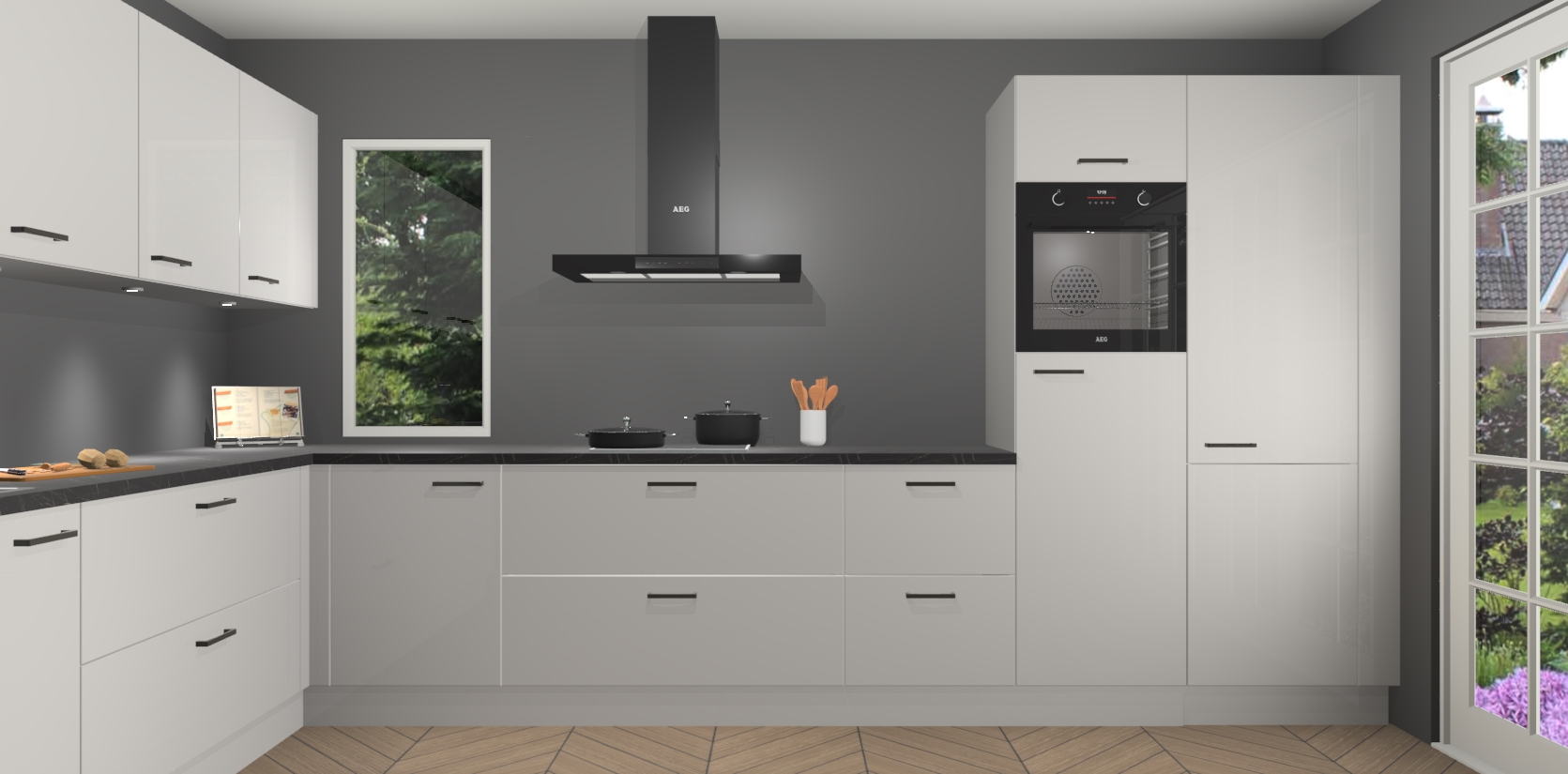 Heeft u nog apparatuur nodig? Geen probleem: de zijdegrijze hoogglans keuken Harare bevat vijf ingebouwde apparaten - een oven, inductiekookplaat, afzuigkap, vaatwasser en koelkast - die gemakkelijk kunnen worden bijgewerkt naar AEG na bestelling. En als dat nog niet genoeg is; onze kasten worden pre-geassembleerd geleverd en zijn verkrijgbaar tegen een vastgeroeste lage prijs! U hoeft nooit meer te zoeken naar goede kwaliteit en service want onze producten hebben echt Duitse kwaliteit.