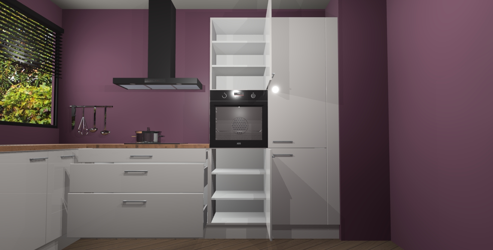 Met een modern, tijdloos design en ruime opslagruimte, zult u zich in no-time thuis voelen in uw nieuwe keuken. Uw leven wordt eenvoudiger met de soft-close deuren die voor het ultieme stille comfort zorgen - geen geluid dat u stoort terwijl u kookt. Ook is de keuken voorzien van 5 ingebouwde apparaten: een oven, inductie kookplaat, afzuigkap, vaatwasser en koelkast. Deze kunnen gemakkelijk na bestelling worden bijgewerkt naar AEG - waardoor uw luxe ervaring compleet is.