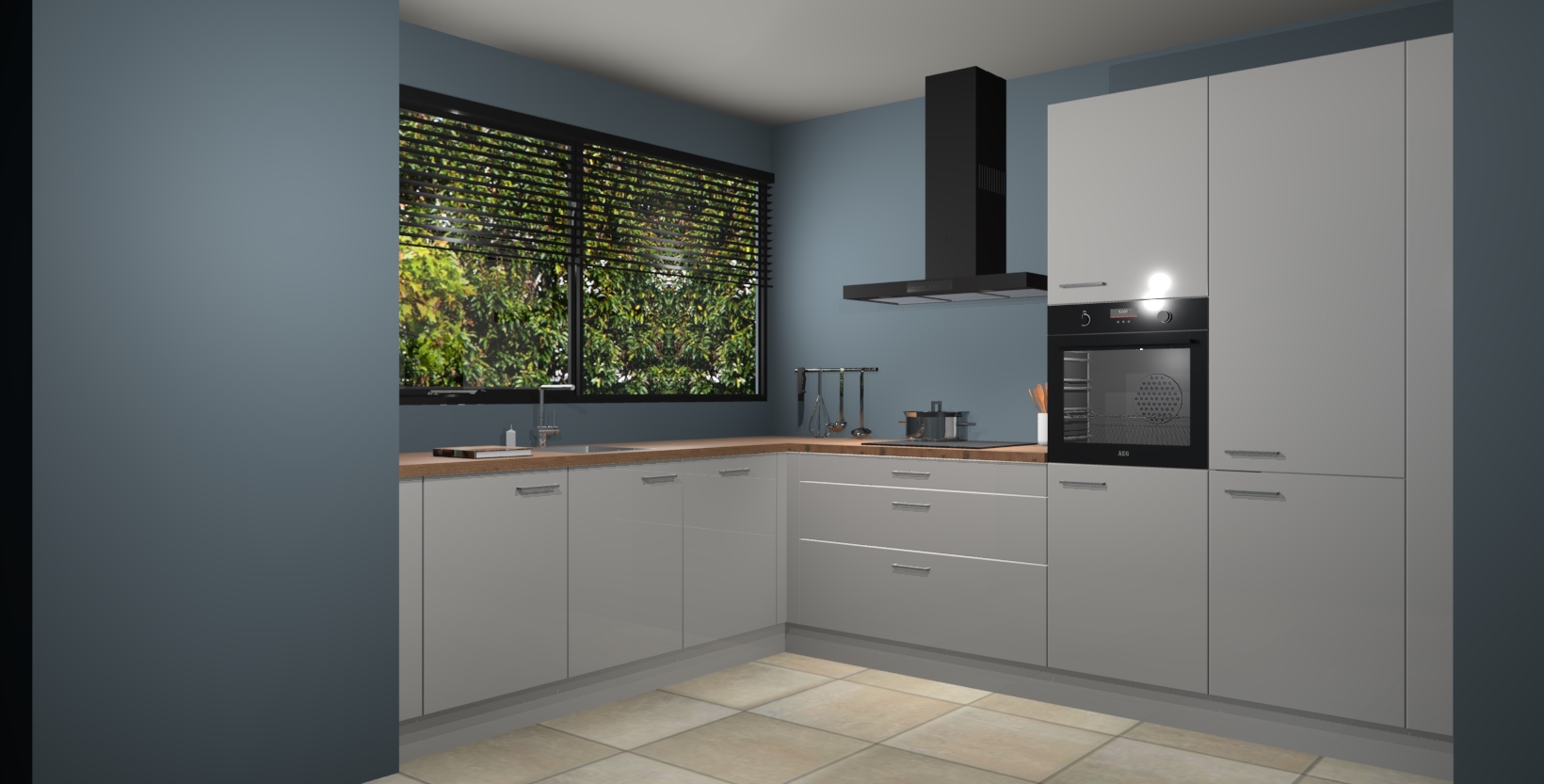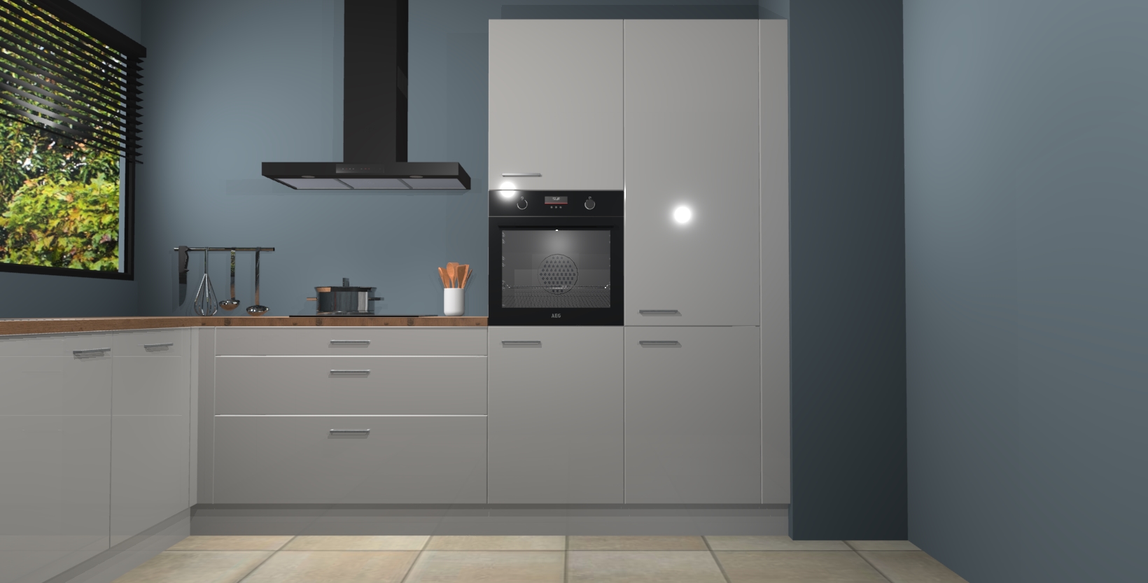 Met een modern, tijdloos design en ruime opslagruimte, zult u zich in no-time thuis voelen in uw nieuwe keuken. Uw leven wordt eenvoudiger met de soft-close deuren die voor het ultieme stille comfort zorgen - geen geluid dat u stoort terwijl u kookt. Ook is de keuken voorzien van 5 ingebouwde apparaten: een oven, inductie kookplaat, afzuigkap, vaatwasser en koelkast. Deze kunnen gemakkelijk na bestelling worden bijgewerkt naar AEG - waardoor uw luxe ervaring compleet is.