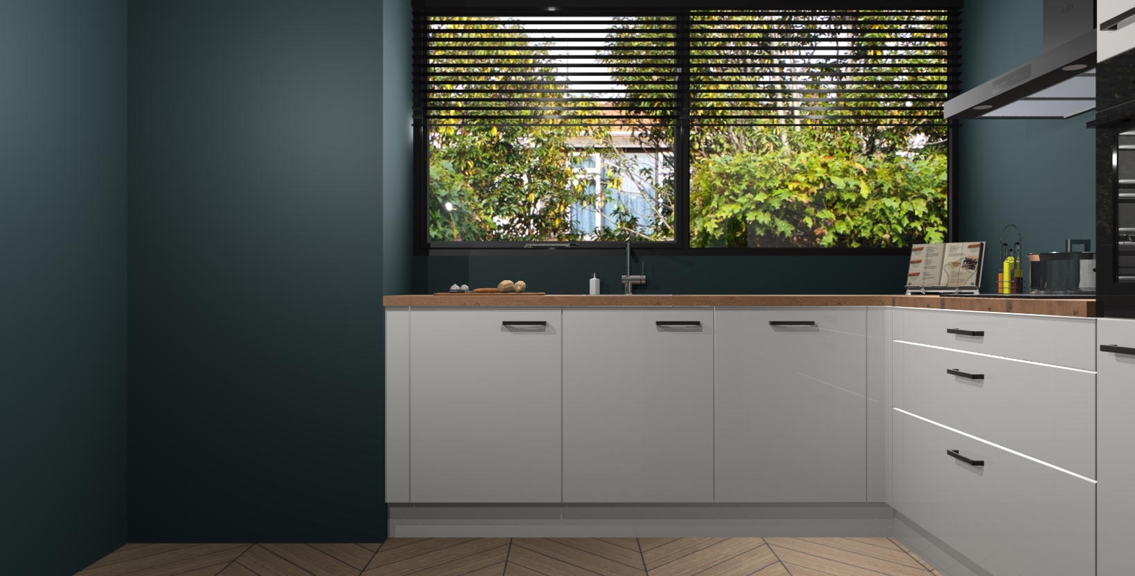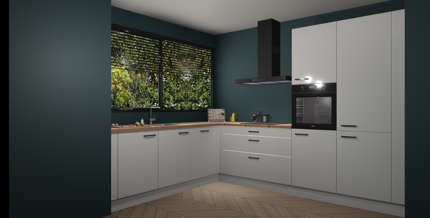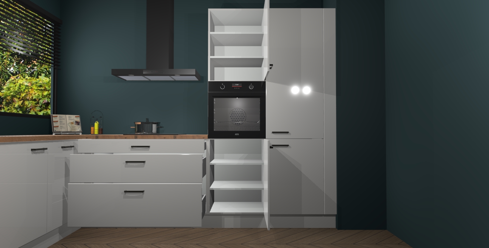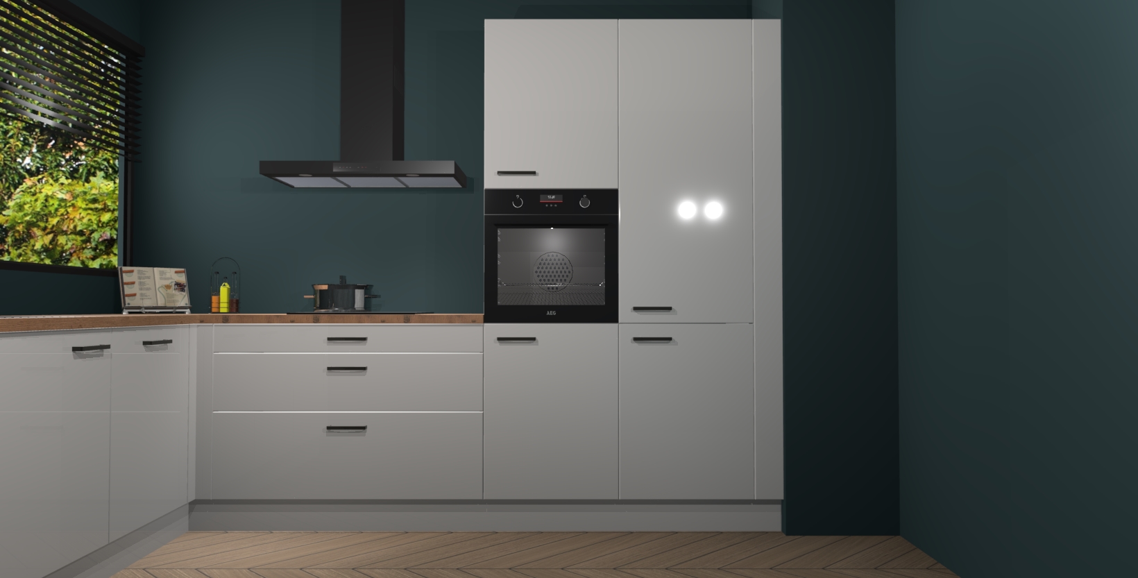 Met een modern, tijdloos design en ruime opslagruimte, zult u zich in no-time thuis voelen in uw nieuwe keuken. Uw leven wordt eenvoudiger met de soft-close deuren die voor het ultieme stille comfort zorgen - geen geluid dat u stoort terwijl u kookt. Ook is de keuken voorzien van 5 ingebouwde apparaten: een oven, inductie kookplaat, afzuigkap, vaatwasser en koelkast. Deze kunnen gemakkelijk na bestelling worden bijgewerkt naar AEG - waardoor uw luxe ervaring compleet is.