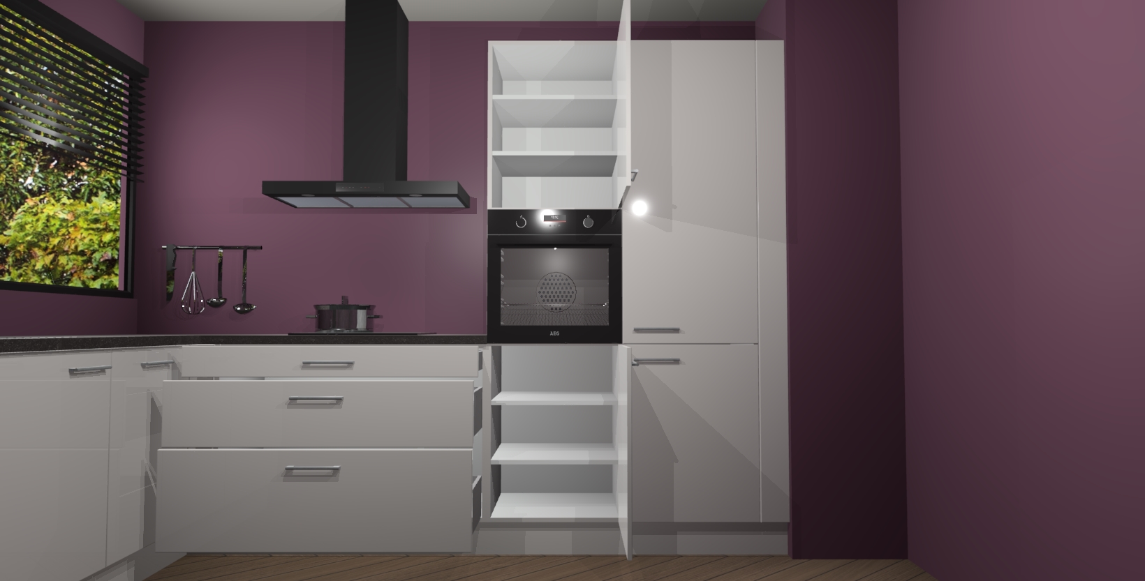 Met een modern, tijdloos design en ruime opslagruimte, zult u zich in no-time thuis voelen in uw nieuwe keuken. Uw leven wordt eenvoudiger met de soft-close deuren die voor het ultieme stille comfort zorgen - geen geluid dat u stoort terwijl u kookt. Ook is de keuken voorzien van 5 ingebouwde apparaten: een oven, inductie kookplaat, afzuigkap, vaatwasser en koelkast. Deze kunnen gemakkelijk na bestelling worden bijgewerkt naar AEG - waardoor uw luxe ervaring compleet is.