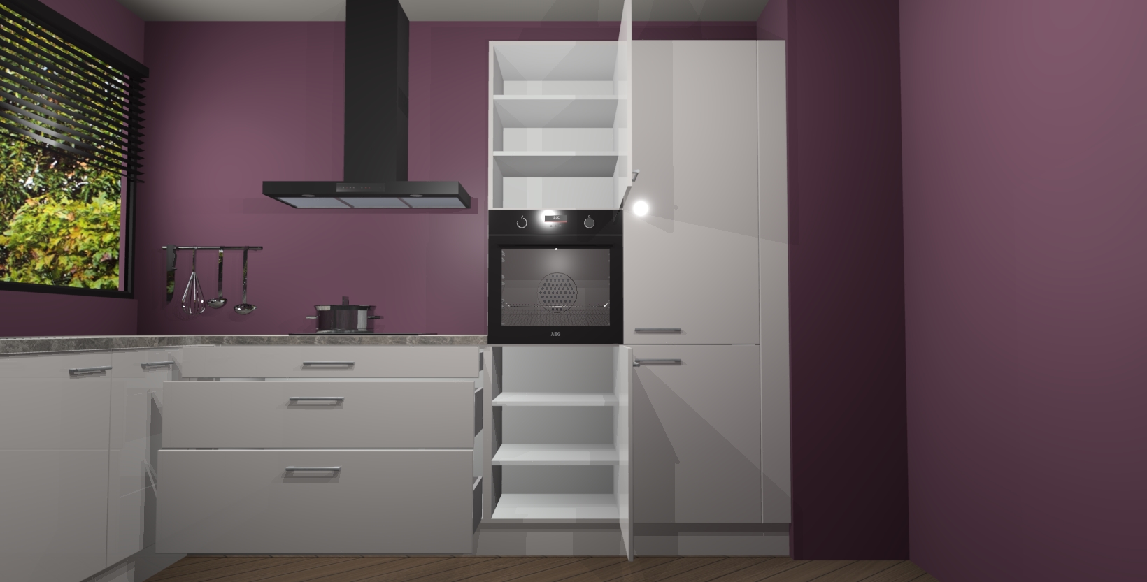 Met een modern, tijdloos design en ruime opslagruimte, zult u zich in no-time thuis voelen in uw nieuwe keuken. Uw leven wordt eenvoudiger met de soft-close deuren die voor het ultieme stille comfort zorgen - geen geluid dat u stoort terwijl u kookt. Ook is de keuken voorzien van 5 ingebouwde apparaten: een oven, inductie kookplaat, afzuigkap, vaatwasser en koelkast. Deze kunnen gemakkelijk na bestelling worden bijgewerkt naar AEG - waardoor uw luxe ervaring compleet is.