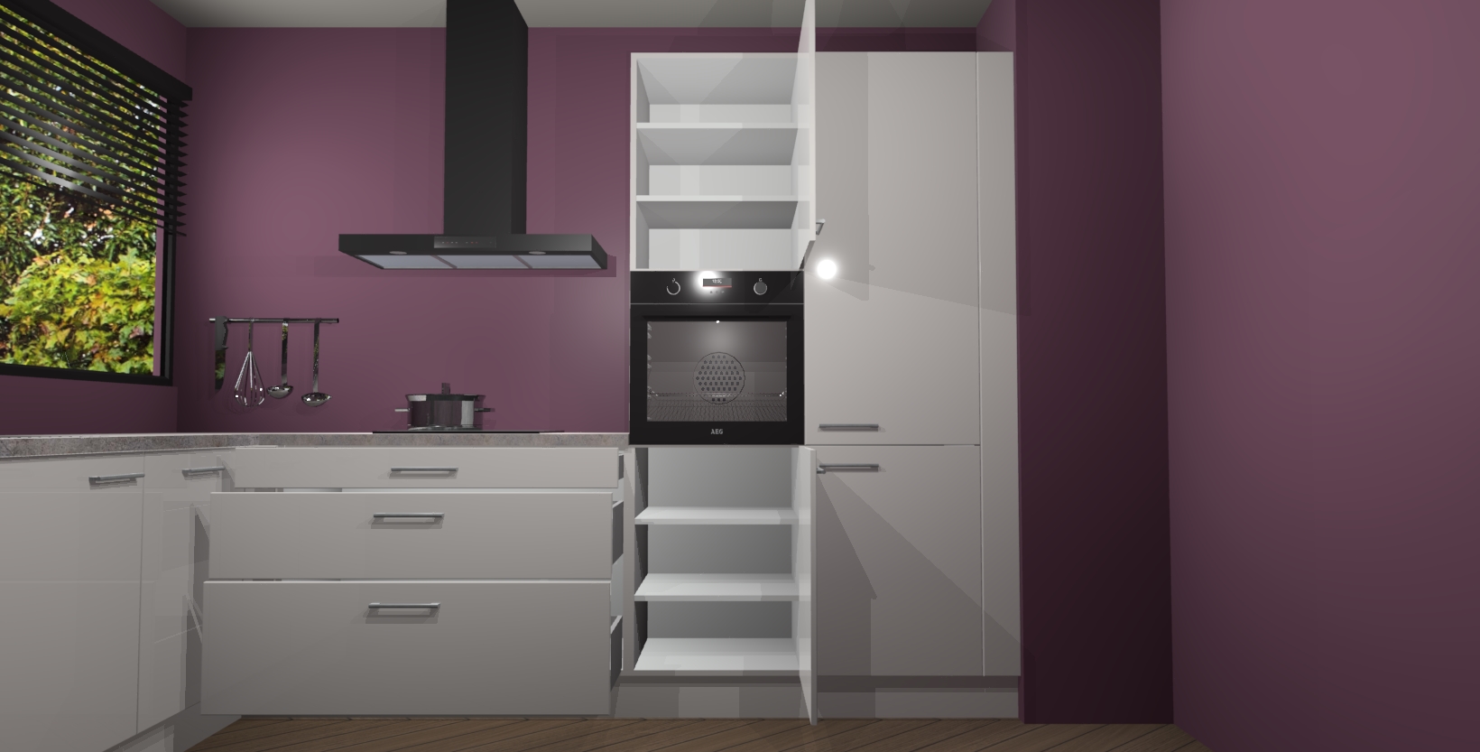 Met een modern, tijdloos design en ruime opslagruimte, zult u zich in no-time thuis voelen in uw nieuwe keuken. Uw leven wordt eenvoudiger met de soft-close deuren die voor het ultieme stille comfort zorgen - geen geluid dat u stoort terwijl u kookt. Ook is de keuken voorzien van 5 ingebouwde apparaten: een oven, inductie kookplaat, afzuigkap, vaatwasser en koelkast. Deze kunnen gemakkelijk na bestelling worden bijgewerkt naar AEG - waardoor uw luxe ervaring compleet is.