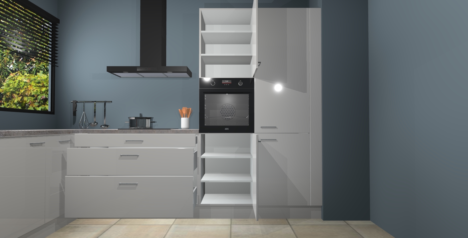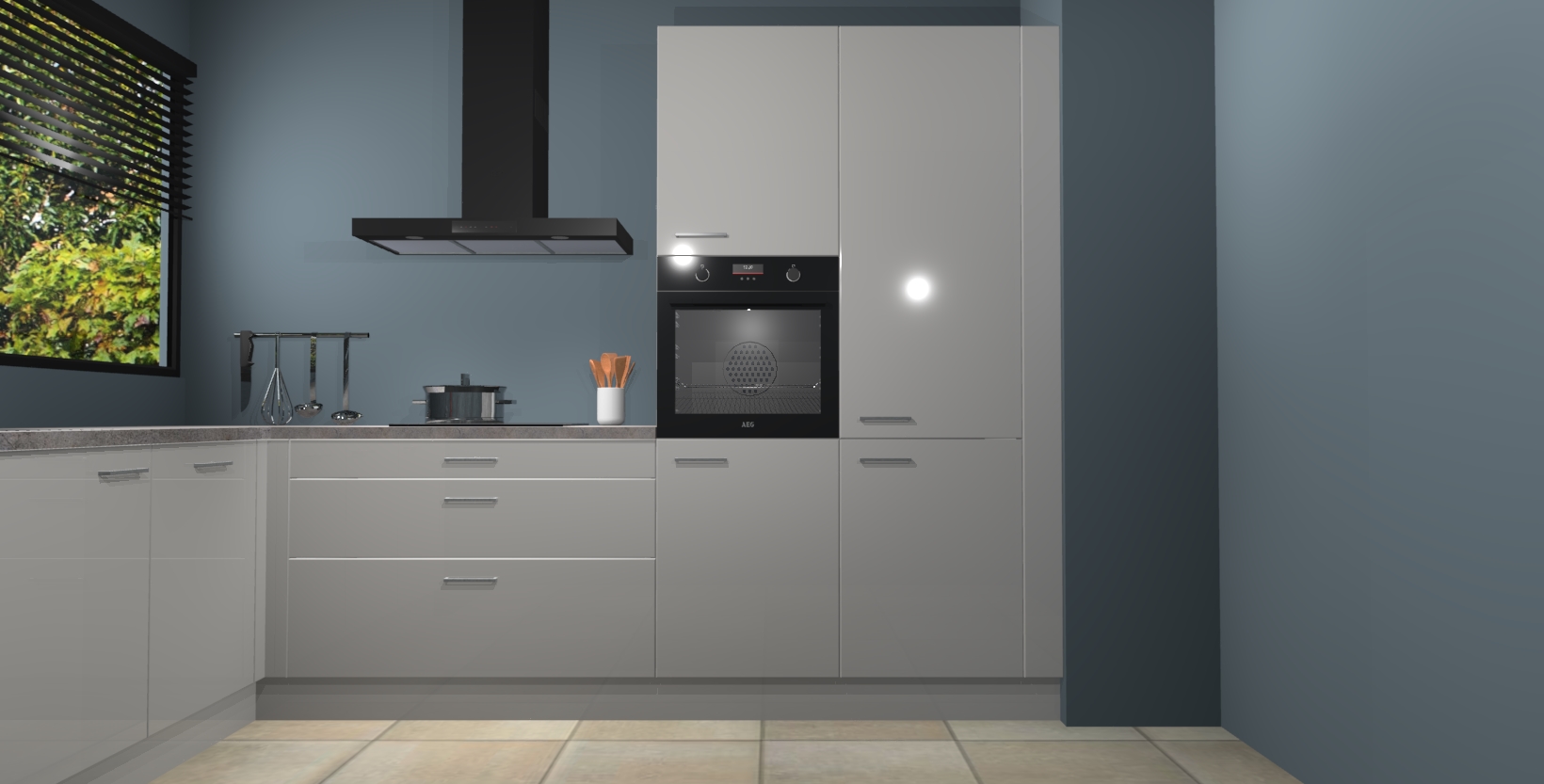 Met een modern, tijdloos design en ruime opslagruimte, zult u zich in no-time thuis voelen in uw nieuwe keuken. Uw leven wordt eenvoudiger met de soft-close deuren die voor het ultieme stille comfort zorgen - geen geluid dat u stoort terwijl u kookt. Ook is de keuken voorzien van 5 ingebouwde apparaten: een oven, inductie kookplaat, afzuigkap, vaatwasser en koelkast. Deze kunnen gemakkelijk na bestelling worden bijgewerkt naar AEG - waardoor uw luxe ervaring compleet is.