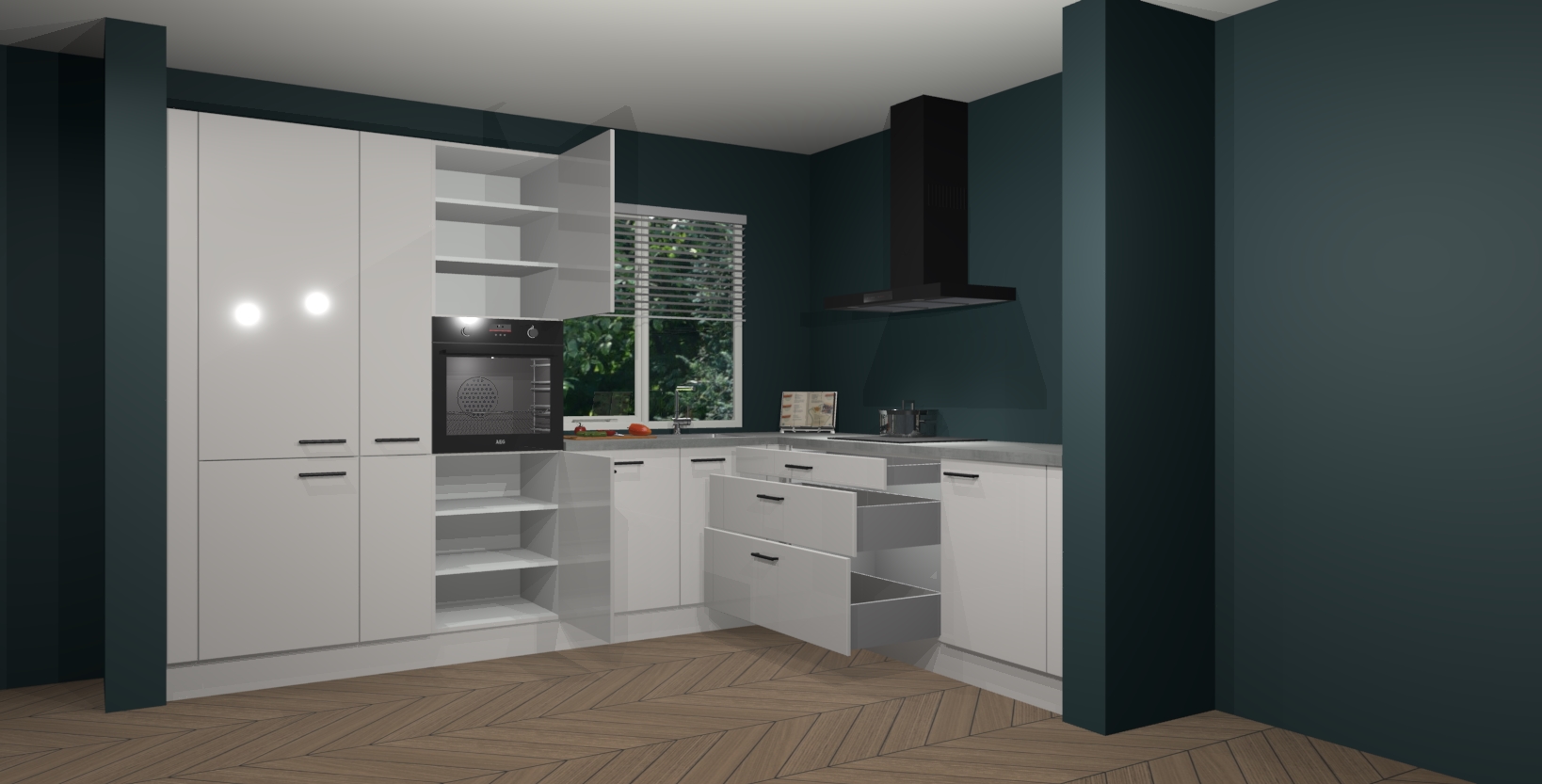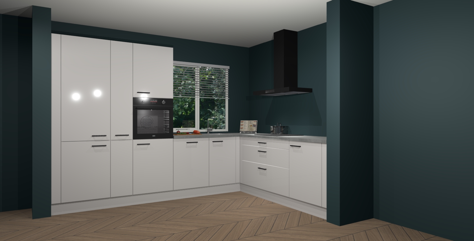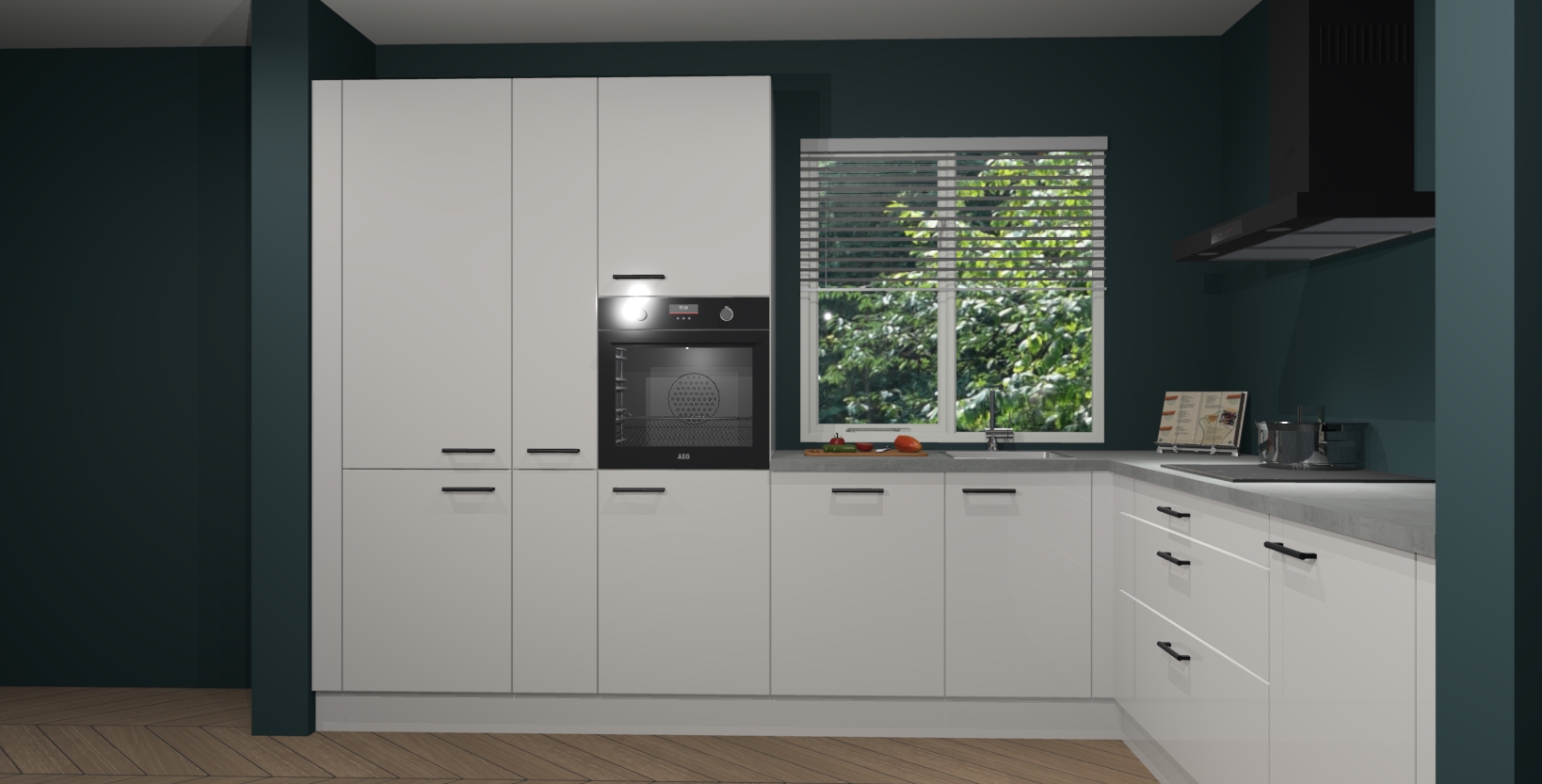 Met een modern, tijdloos design en ruime opslagruimte, zult u zich in no-time thuis voelen in uw nieuwe keuken. Uw leven wordt eenvoudiger met de soft-close deuren die voor het ultieme stille comfort zorgen - geen geluid dat u stoort terwijl u kookt. Ook is de keuken voorzien van 5 ingebouwde apparaten: een oven, inductie kookplaat, afzuigkap, vaatwasser en koelkast. Deze kunnen gemakkelijk na bestelling worden bijgewerkt naar AEG - waardoor uw luxe ervaring compleet is.