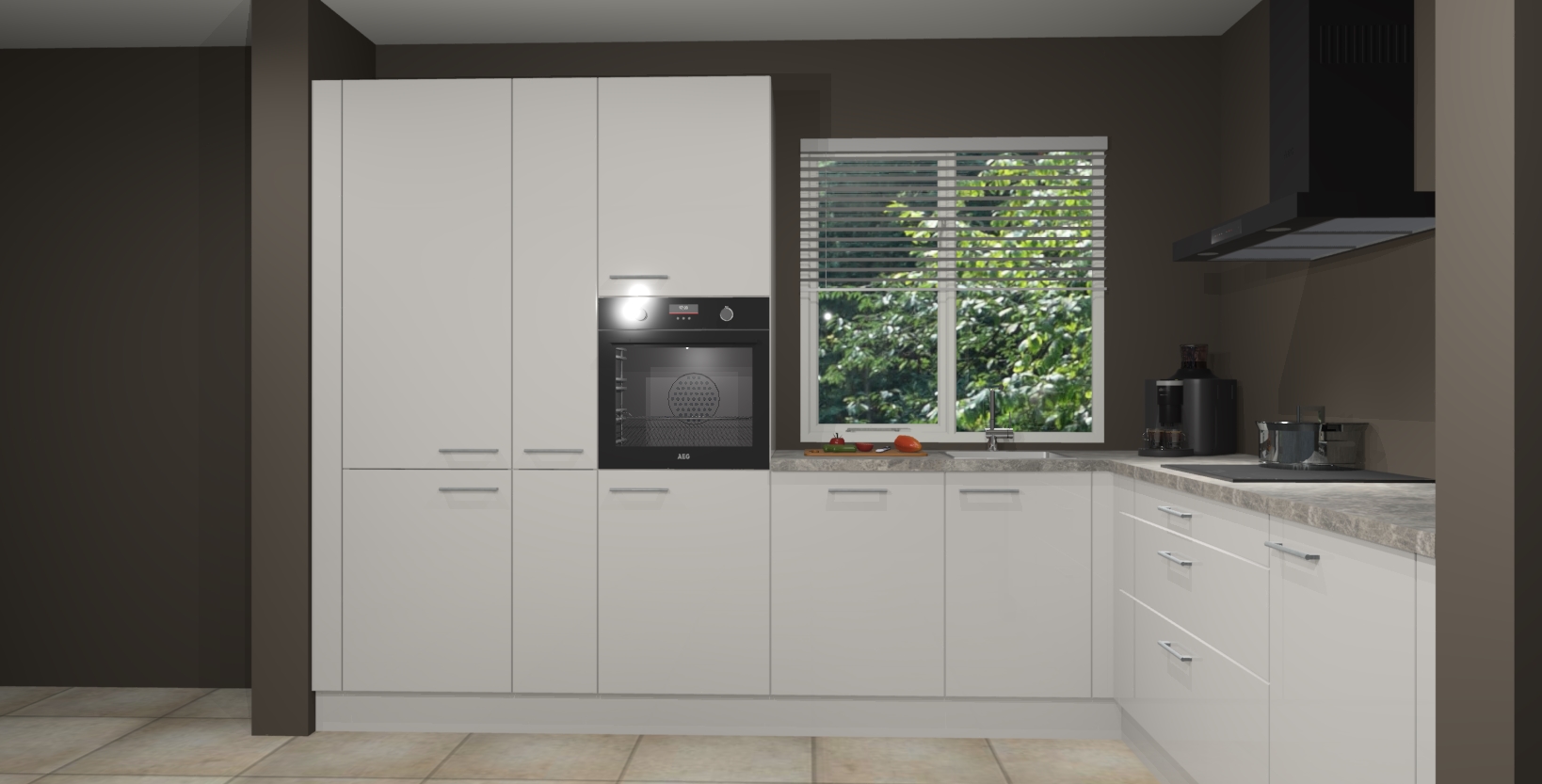 Met een modern, tijdloos design en ruime opslagruimte, zult u zich in no-time thuis voelen in uw nieuwe keuken. Uw leven wordt eenvoudiger met de soft-close deuren die voor het ultieme stille comfort zorgen - geen geluid dat u stoort terwijl u kookt. Ook is de keuken voorzien van 5 ingebouwde apparaten: een oven, inductie kookplaat, afzuigkap, vaatwasser en koelkast. Deze kunnen gemakkelijk na bestelling worden bijgewerkt naar AEG - waardoor uw luxe ervaring compleet is.