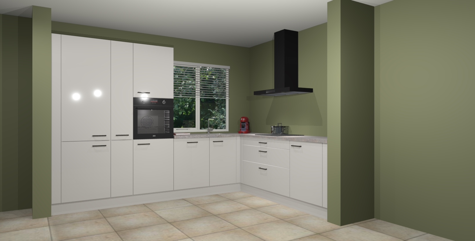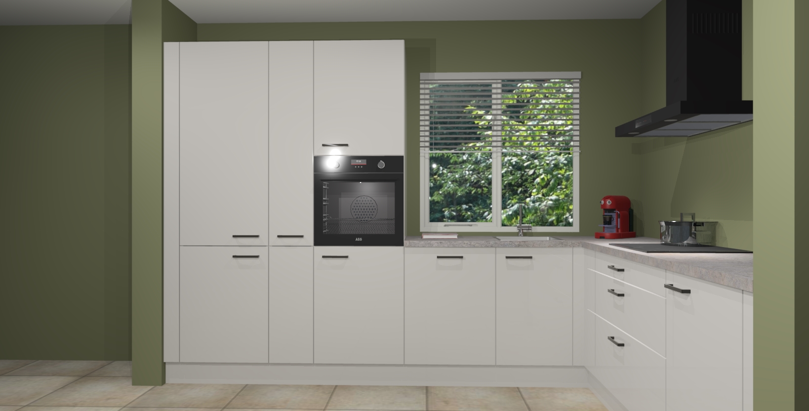 Met een modern, tijdloos design en ruime opslagruimte, zult u zich in no-time thuis voelen in uw nieuwe keuken. Uw leven wordt eenvoudiger met de soft-close deuren die voor het ultieme stille comfort zorgen - geen geluid dat u stoort terwijl u kookt. Ook is de keuken voorzien van 5 ingebouwde apparaten: een oven, inductie kookplaat, afzuigkap, vaatwasser en koelkast. Deze kunnen gemakkelijk na bestelling worden bijgewerkt naar AEG - waardoor uw luxe ervaring compleet is.