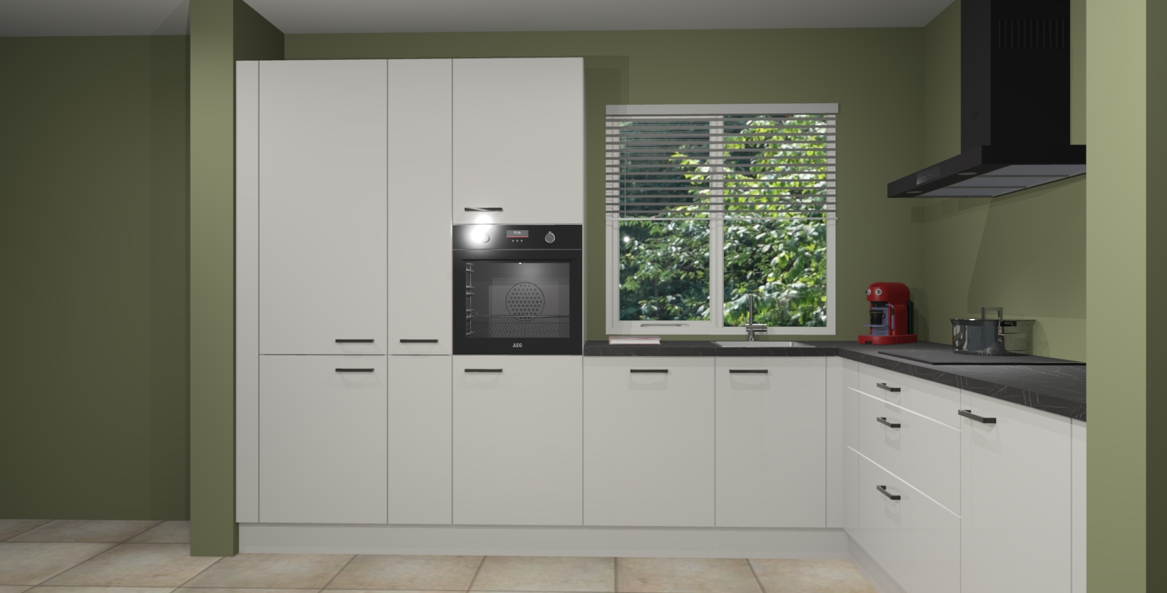 Met een modern, tijdloos design en ruime opslagruimte, zult u zich in no-time thuis voelen in uw nieuwe keuken. Uw leven wordt eenvoudiger met de soft-close deuren die voor het ultieme stille comfort zorgen - geen geluid dat u stoort terwijl u kookt. Ook is de keuken voorzien van 5 ingebouwde apparaten: een oven, inductie kookplaat, afzuigkap, vaatwasser en koelkast. Deze kunnen gemakkelijk na bestelling worden bijgewerkt naar AEG - waardoor uw luxe ervaring compleet is.
