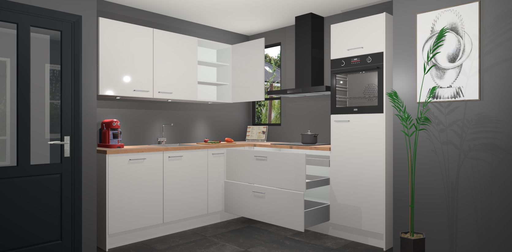 Inclusief plinten, stelpoten en werkblad