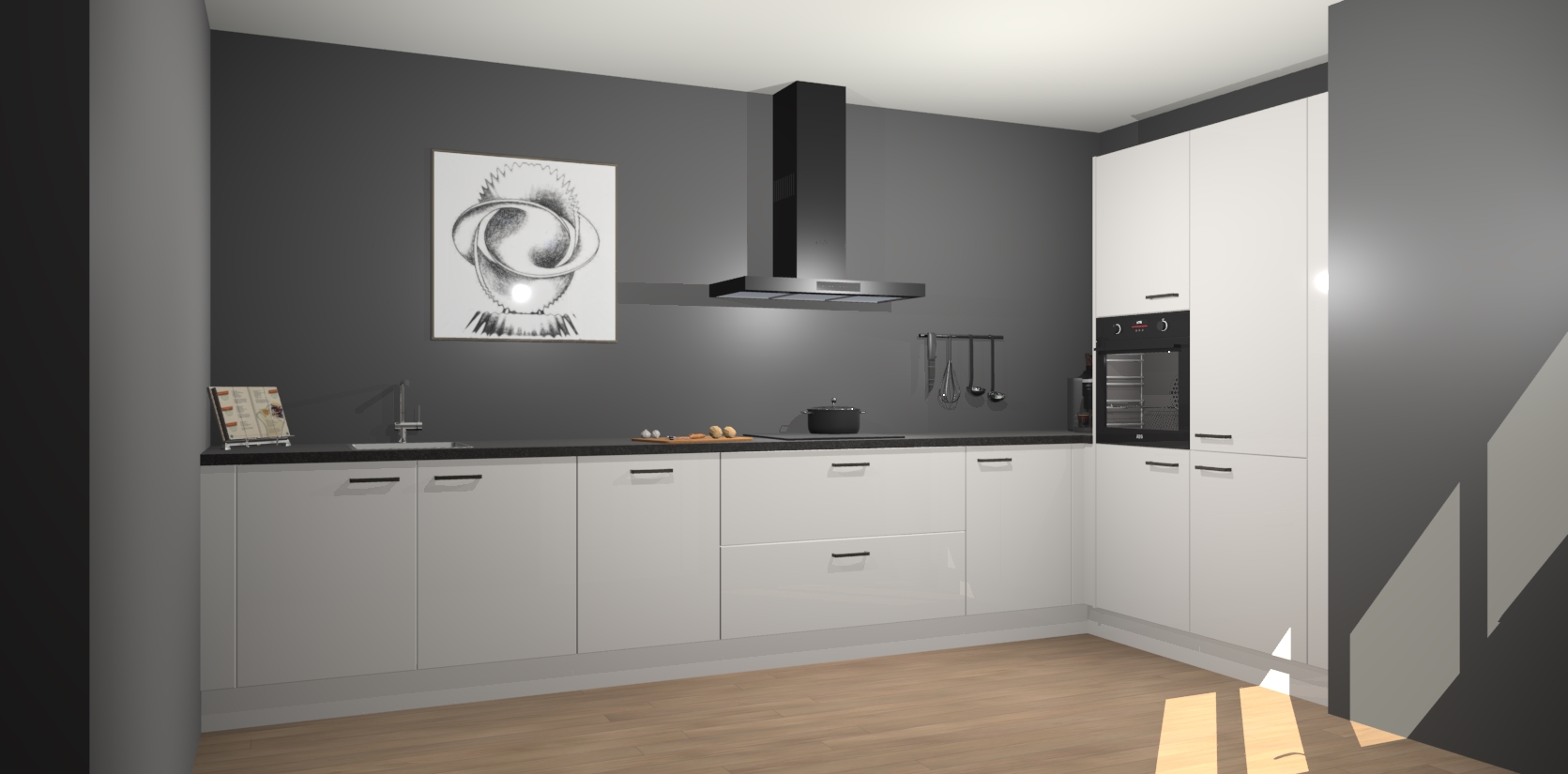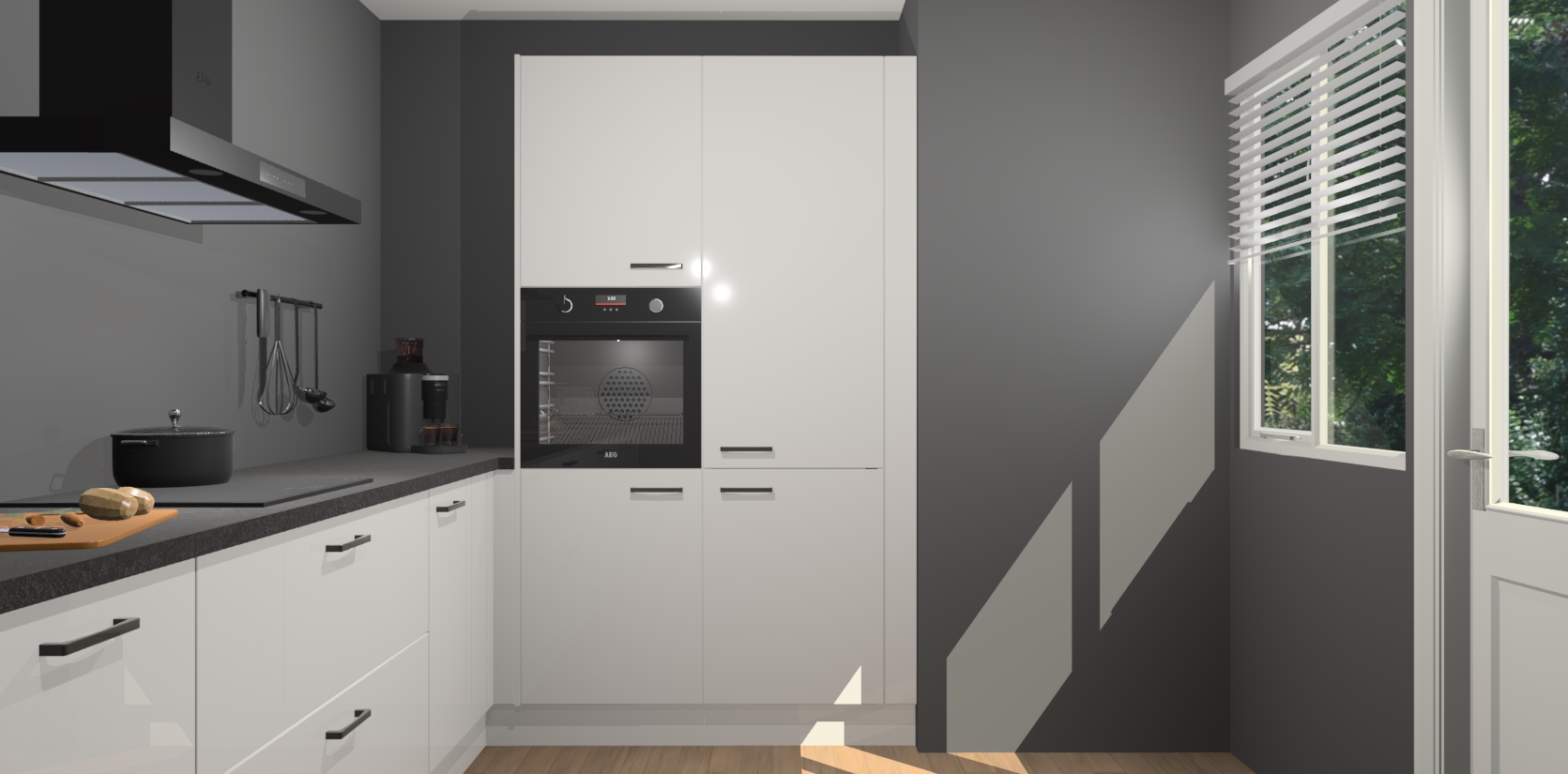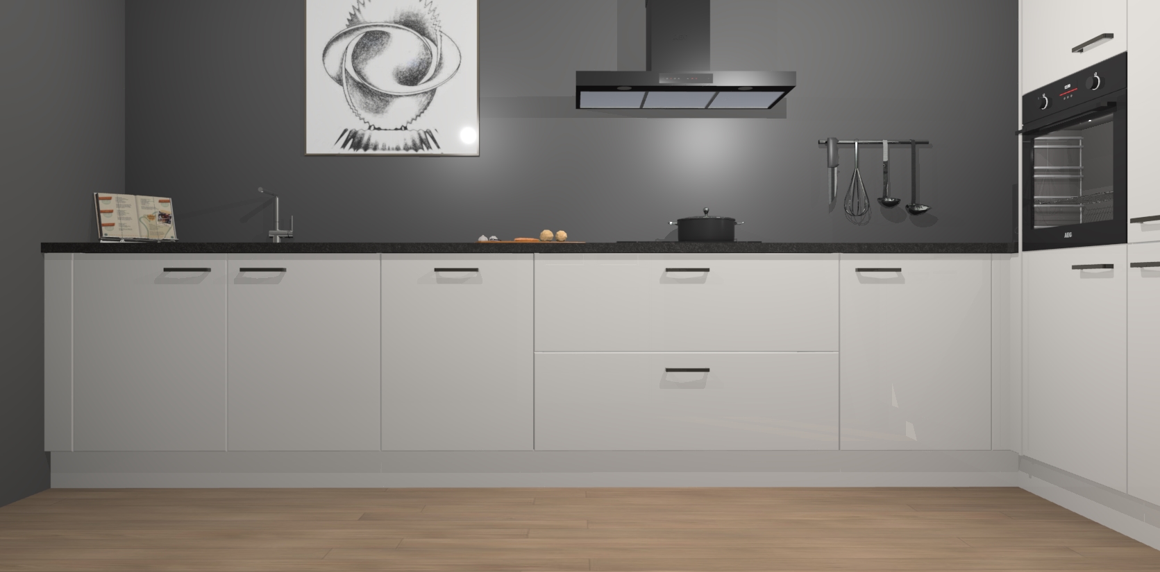 Welkom bij de Zijdegrijze hoogglans keuken Khao Lak. Deze prachtige keuken zal de komende jaren het middelpunt van de belangstelling in uw huis zijn. Uitgerust met vijf inbouwapparaten komt u nooit kookgereedschap tekort. Bovendien geeft de warme houtlook elke ruimte een uitnodigende en tijdloze uitstraling.