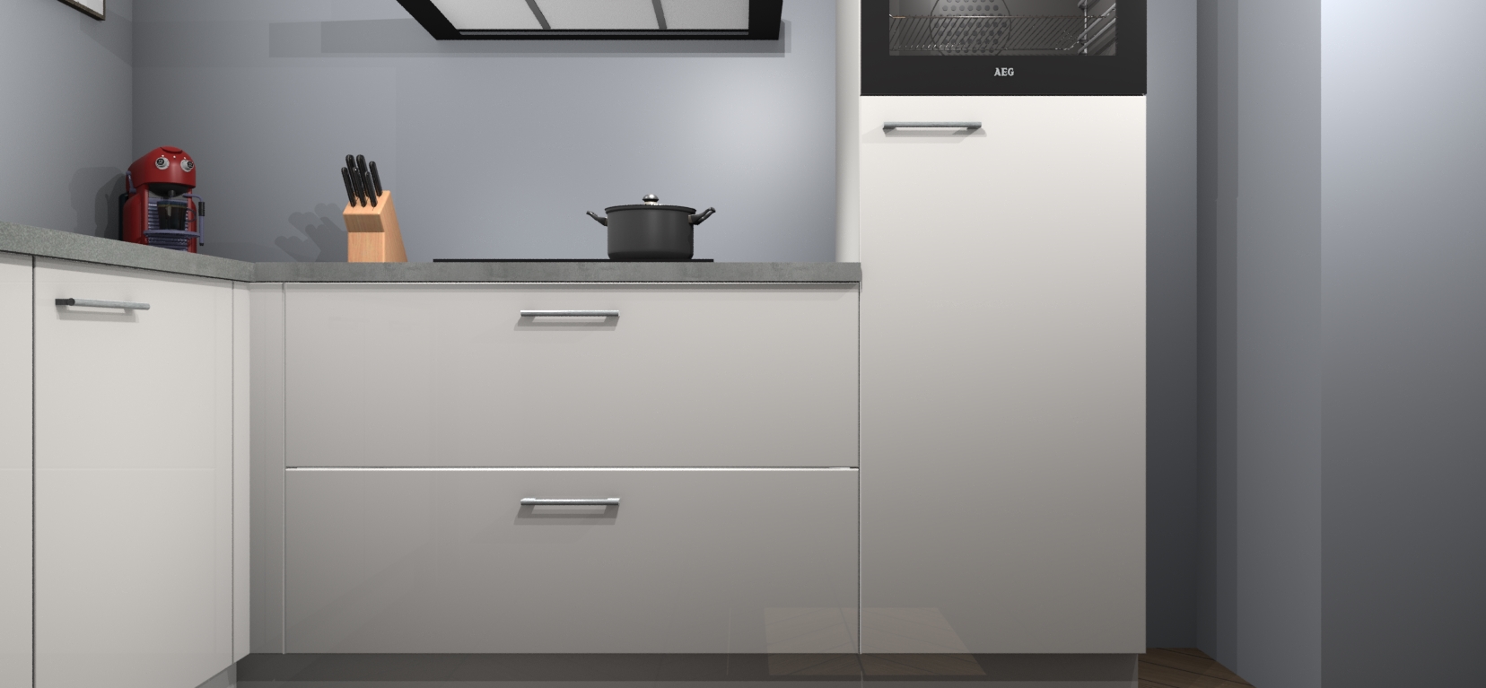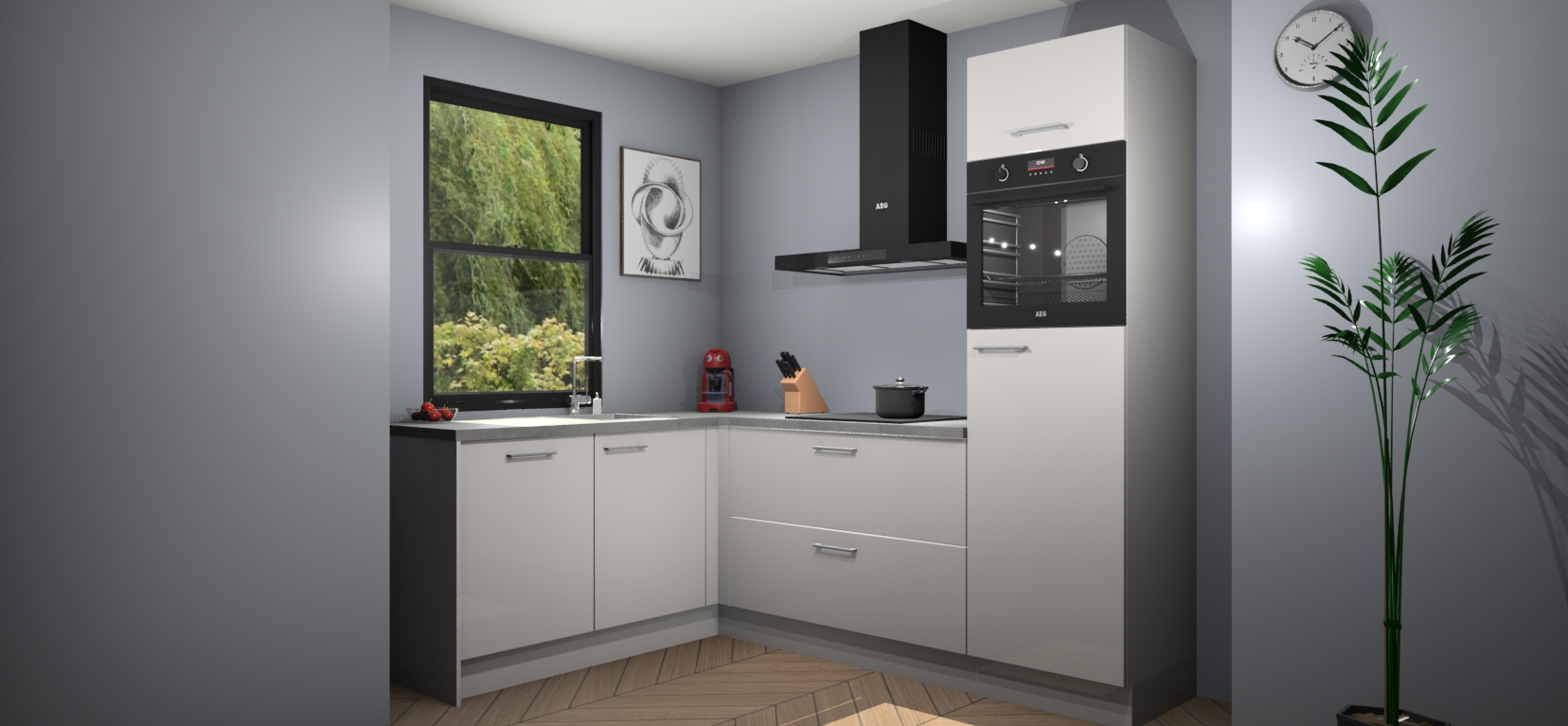 Moedige modernisten! De zijdegrijze hoogglans keuken Kinshasa is het perfecte antwoord op al uw keukendromen. Dit geraffineerde, tijdloze ontwerp combineert strakke kasten met hoogglans details zodat u die dure look krijgt zonder het dure prijskaartje. We weten dat planning en uitvoering de sleutels zijn tot een geslaagde keukenrenovatie, dus hebben we ervoor gezorgd dat we vijf inbouwapparaten in ons pakket hebben: een oven, inductiekookplaat, afzuigkap, vaatwasser en koelkast. Deze kunnen na bestelling gemakkelijk worden uitgebreid voor nog meer gemak.