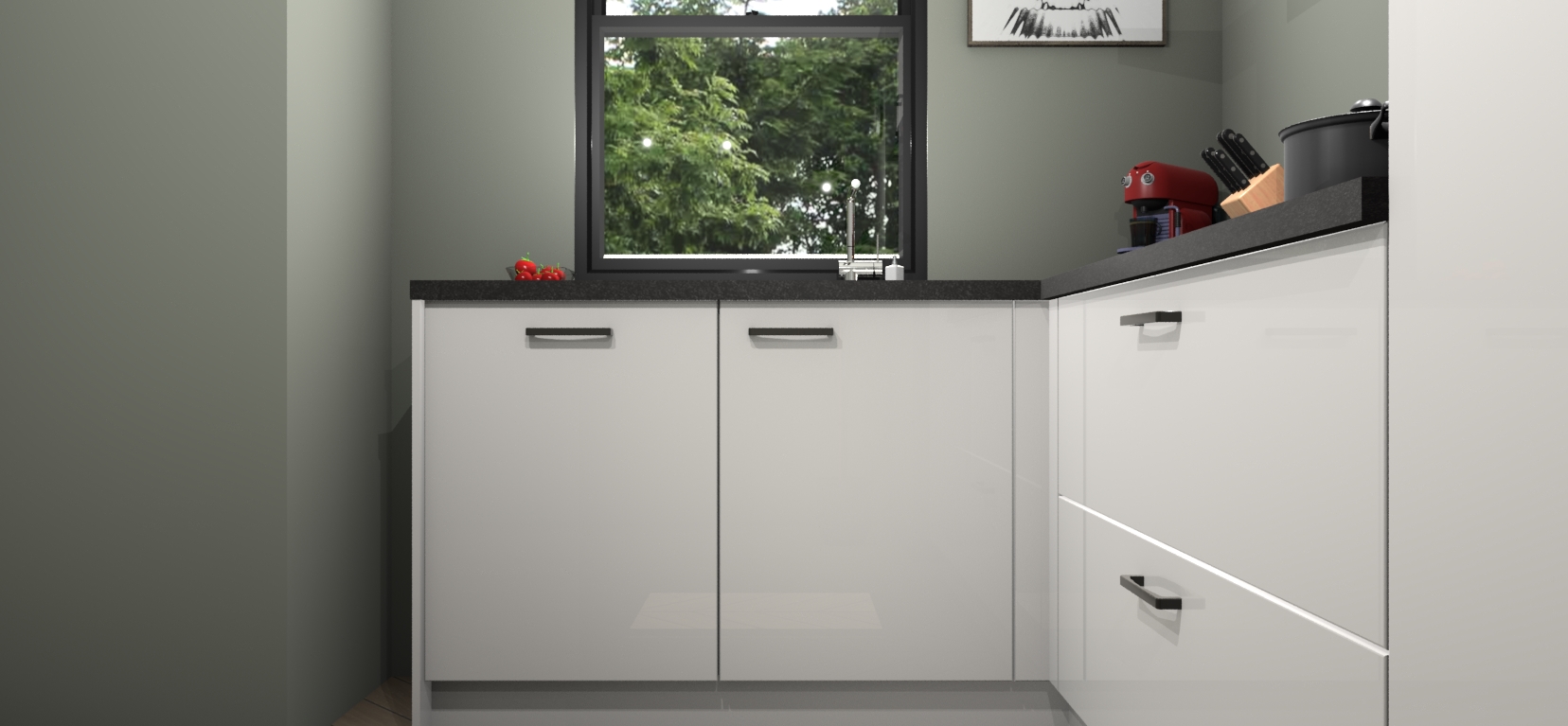 Moedige modernisten! De zijdegrijze hoogglans keuken Kinshasa is het perfecte antwoord op al uw keukendromen. Dit geraffineerde, tijdloze ontwerp combineert strakke kasten met hoogglans details zodat u die dure look krijgt zonder het dure prijskaartje. We weten dat planning en uitvoering de sleutels zijn tot een geslaagde keukenrenovatie, dus hebben we ervoor gezorgd dat we vijf inbouwapparaten in ons pakket hebben: een oven, inductiekookplaat, afzuigkap, vaatwasser en koelkast. Deze kunnen na bestelling gemakkelijk worden uitgebreid voor nog meer gemak.