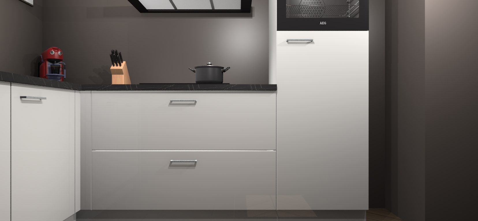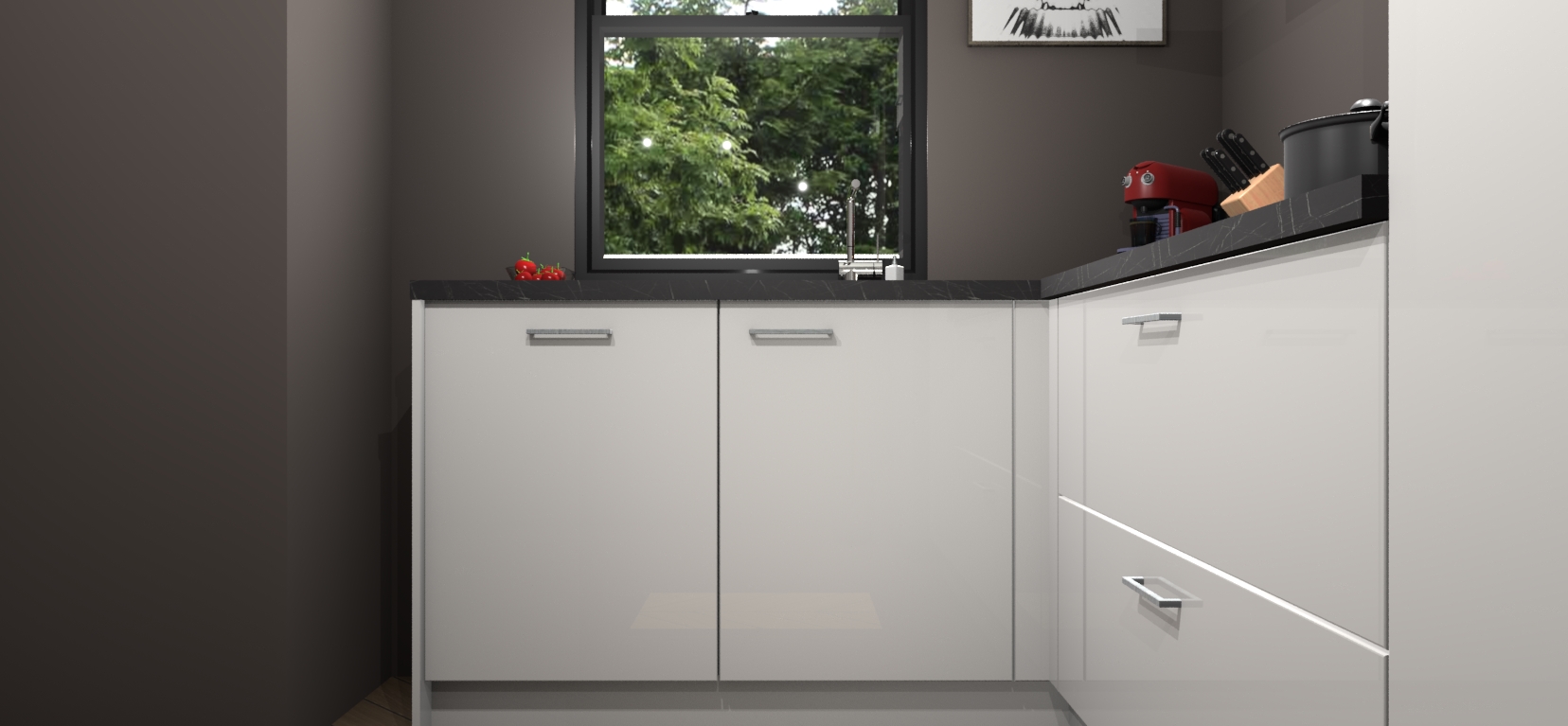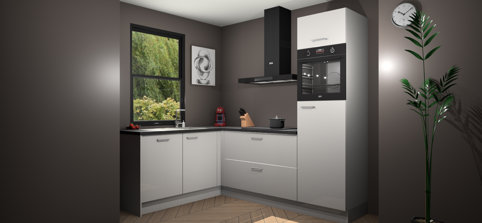 Moedige modernisten! De zijdegrijze hoogglans keuken Kinshasa is het perfecte antwoord op al uw keukendromen. Dit geraffineerde, tijdloze ontwerp combineert strakke kasten met hoogglans details zodat u die dure look krijgt zonder het dure prijskaartje. We weten dat planning en uitvoering de sleutels zijn tot een geslaagde keukenrenovatie, dus hebben we ervoor gezorgd dat we vijf inbouwapparaten in ons pakket hebben: een oven, inductiekookplaat, afzuigkap, vaatwasser en koelkast. Deze kunnen na bestelling gemakkelijk worden uitgebreid voor nog meer gemak.