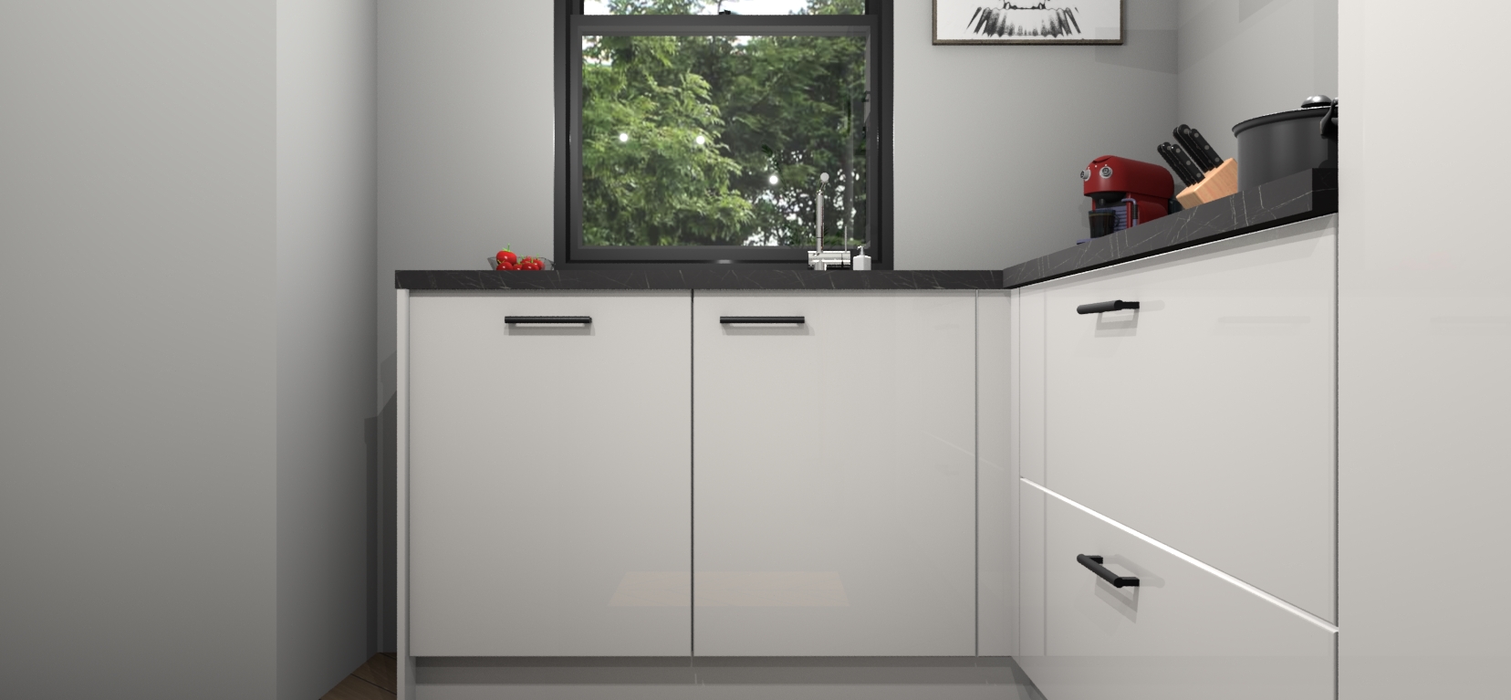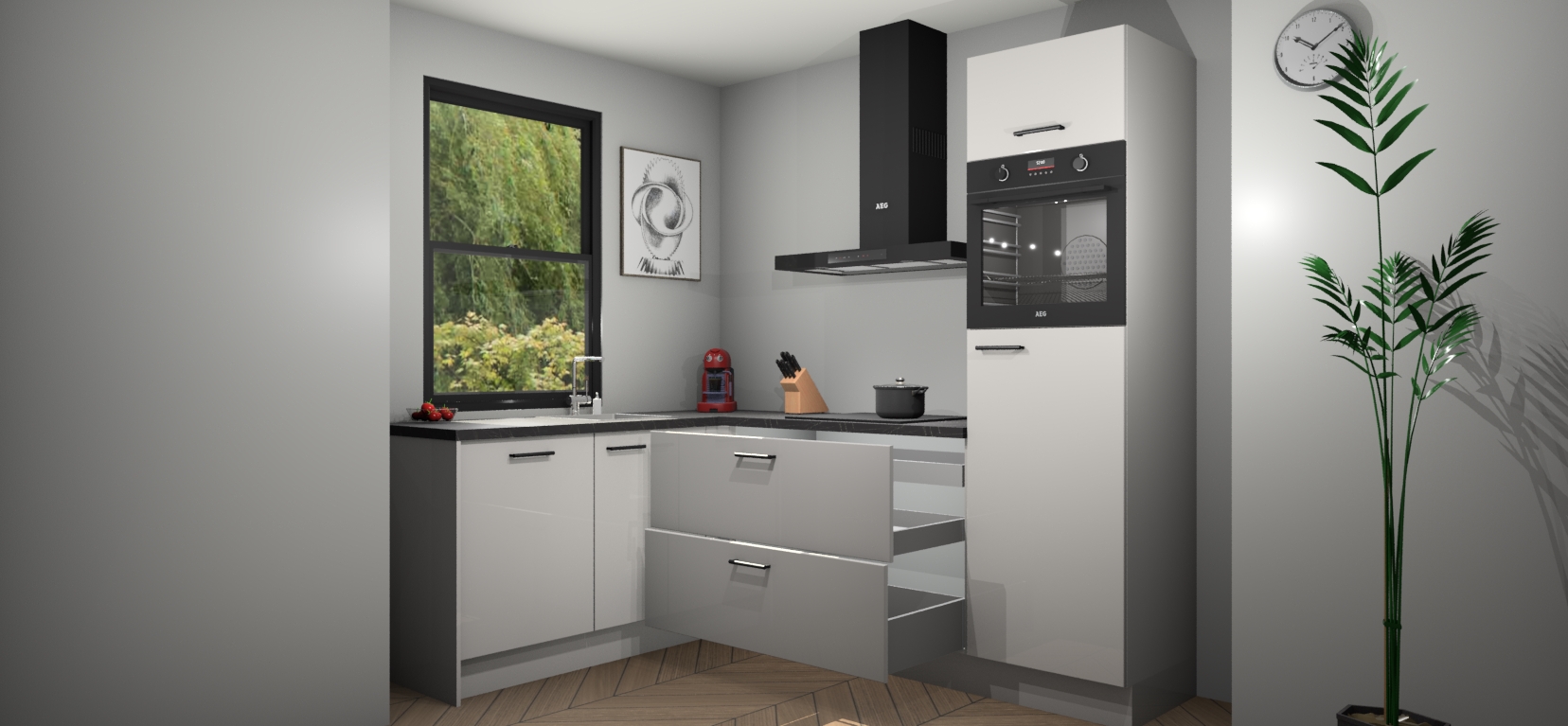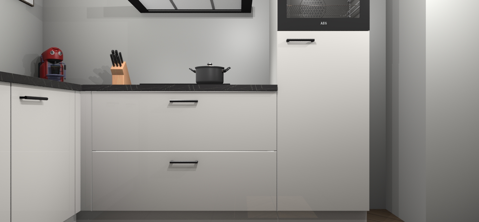 Moedige modernisten! De zijdegrijze hoogglans keuken Kinshasa is het perfecte antwoord op al uw keukendromen. Dit geraffineerde, tijdloze ontwerp combineert strakke kasten met hoogglans details zodat u die dure look krijgt zonder het dure prijskaartje. We weten dat planning en uitvoering de sleutels zijn tot een geslaagde keukenrenovatie, dus hebben we ervoor gezorgd dat we vijf inbouwapparaten in ons pakket hebben: een oven, inductiekookplaat, afzuigkap, vaatwasser en koelkast. Deze kunnen na bestelling gemakkelijk worden uitgebreid voor nog meer gemak.