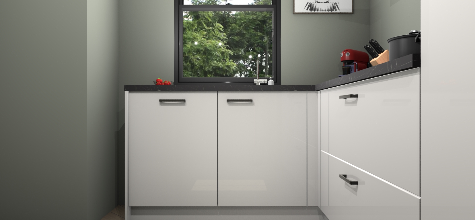 Moedige modernisten! De zijdegrijze hoogglans keuken Kinshasa is het perfecte antwoord op al uw keukendromen. Dit geraffineerde, tijdloze ontwerp combineert strakke kasten met hoogglans details zodat u die dure look krijgt zonder het dure prijskaartje. We weten dat planning en uitvoering de sleutels zijn tot een geslaagde keukenrenovatie, dus hebben we ervoor gezorgd dat we vijf inbouwapparaten in ons pakket hebben: een oven, inductiekookplaat, afzuigkap, vaatwasser en koelkast. Deze kunnen na bestelling gemakkelijk worden uitgebreid voor nog meer gemak.