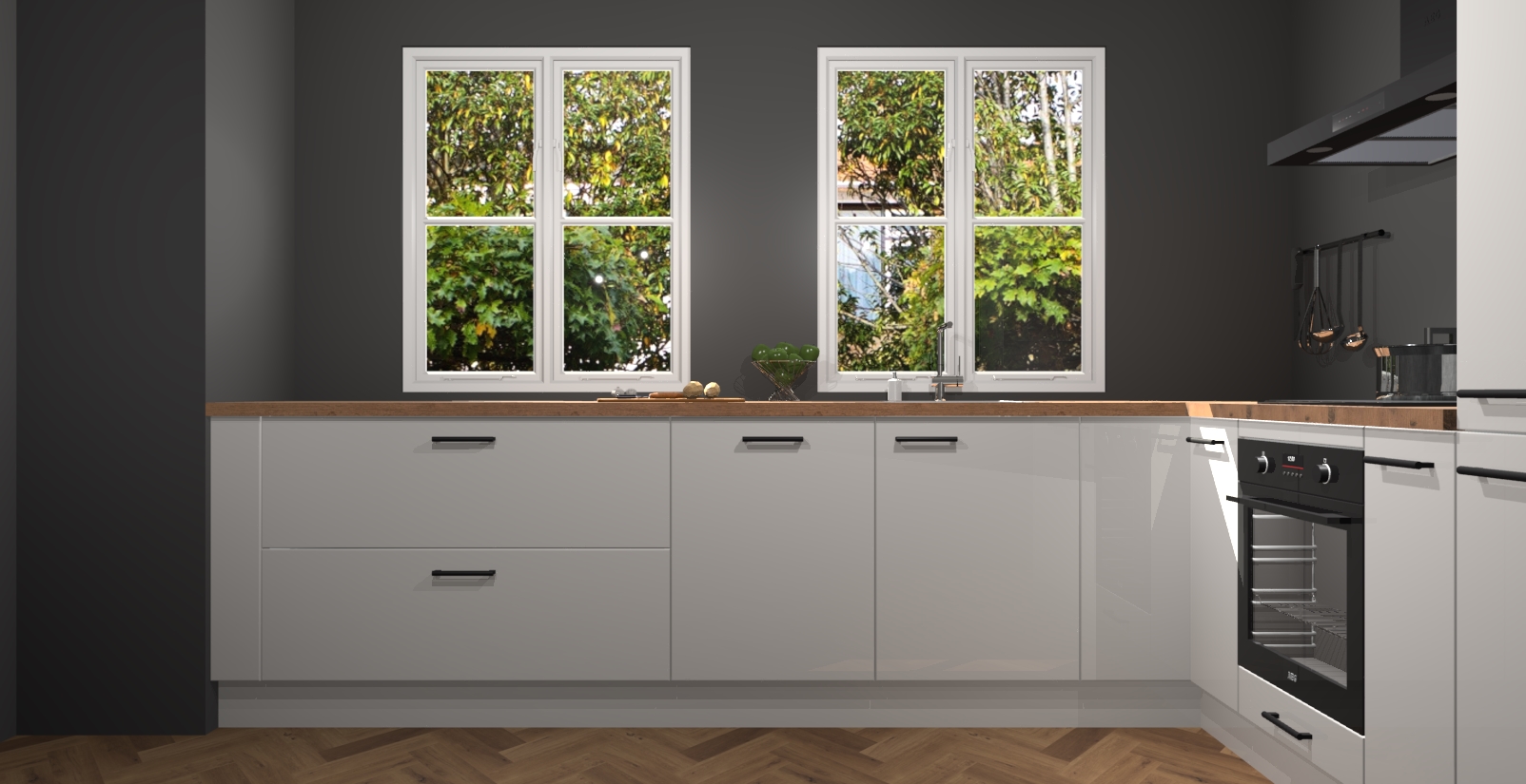 En dat is nog niet alles! U kunt bij uw bestelling ook uw keuken makkelijk upgraden naar AEG apparatuur. Alles wat u nodig heeft om te koken - meteen vanaf het begin! Met zo'n uitstekend pakket is het geen verrassing dat de Zijdegrijze hoogglans keuken Konin een van onze populairste producten is!