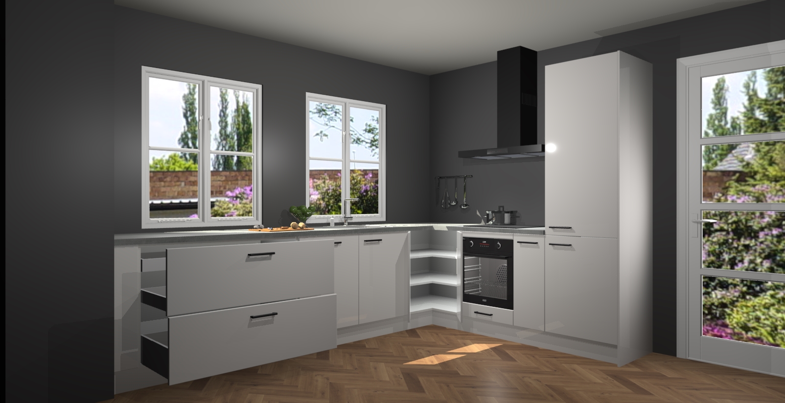 En dat is nog niet alles! U kunt bij uw bestelling ook uw keuken makkelijk upgraden naar AEG apparatuur. Alles wat u nodig heeft om te koken - meteen vanaf het begin! Met zo'n uitstekend pakket is het geen verrassing dat de Zijdegrijze hoogglans keuken Konin een van onze populairste producten is!