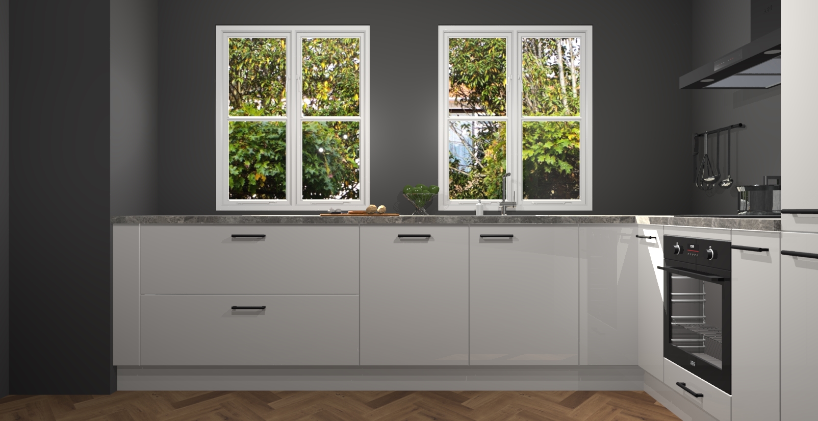 En dat is nog niet alles! U kunt bij uw bestelling ook uw keuken makkelijk upgraden naar AEG apparatuur. Alles wat u nodig heeft om te koken - meteen vanaf het begin! Met zo'n uitstekend pakket is het geen verrassing dat de Zijdegrijze hoogglans keuken Konin een van onze populairste producten is!
