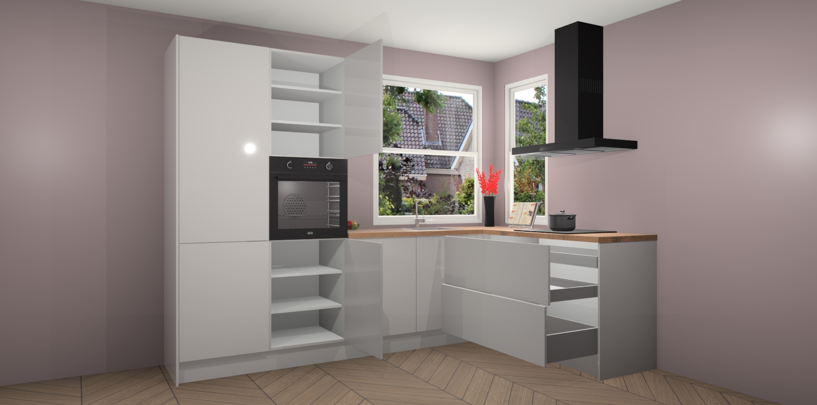 Ontdek de perfecte balans tussen eigentijds design en een gezellige sfeer met de Kotor keuken in Zijdegrijze hoogglans! Deze prachtige hoekkeuken biedt een klassieke stijl plus moderne flair om uw ruimte een uitnodigende look te geven.