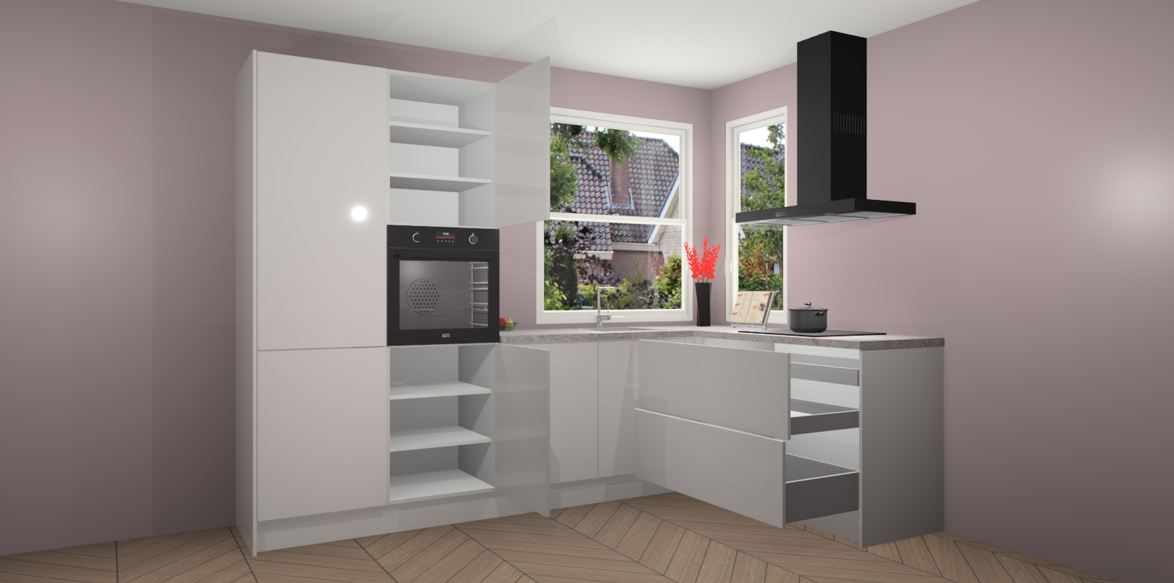 Ontdek de perfecte balans tussen eigentijds design en een gezellige sfeer met de Kotor keuken in Zijdegrijze hoogglans! Deze prachtige hoekkeuken biedt een klassieke stijl plus moderne flair om uw ruimte een uitnodigende look te geven.