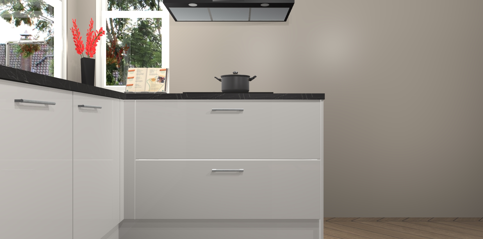 Inclusief plinten, stelpoten en werkblad