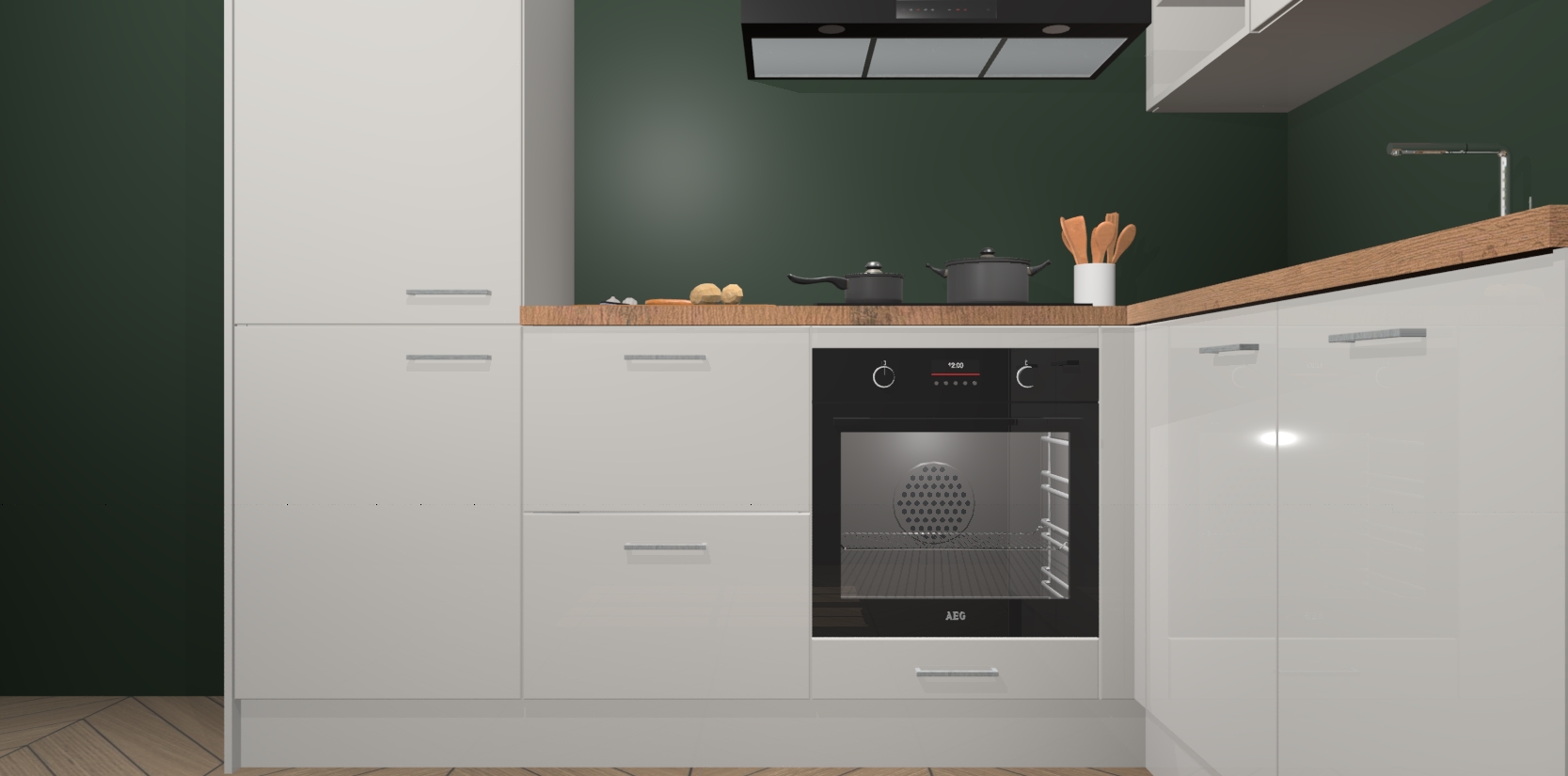 Dit model biedt u voldoende opbergruimte en vijf ingebouwde apparaten: een oven, inductiekookplaat, afzuigkap, vaatwasser en koelkast. Deze apparaten kunnen gemakkelijk worden geüpgrade naar AEG nadat u besteld heeft. De verschillende laden en kastjes bevatten softclose-deuren waardoor ze gezellig dichtvallen met een geruststellend helemaal geruisloos geluid. En dat is nog niet alles! We garanderen ook dat de prijs altijd laag blijft - dus haal nu uw Zijdegrijze hoogglans keuken Krakau terwijl het kan.