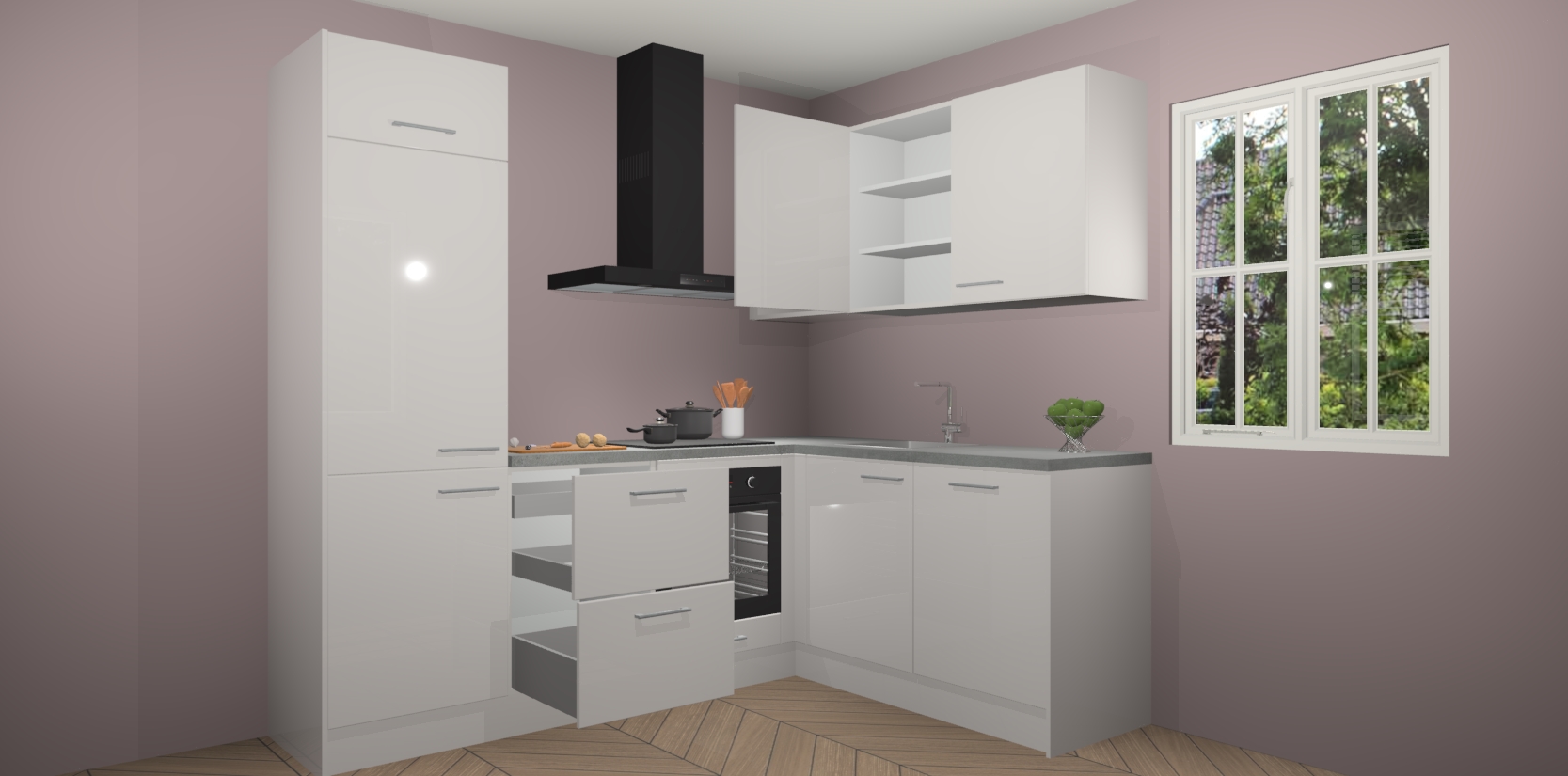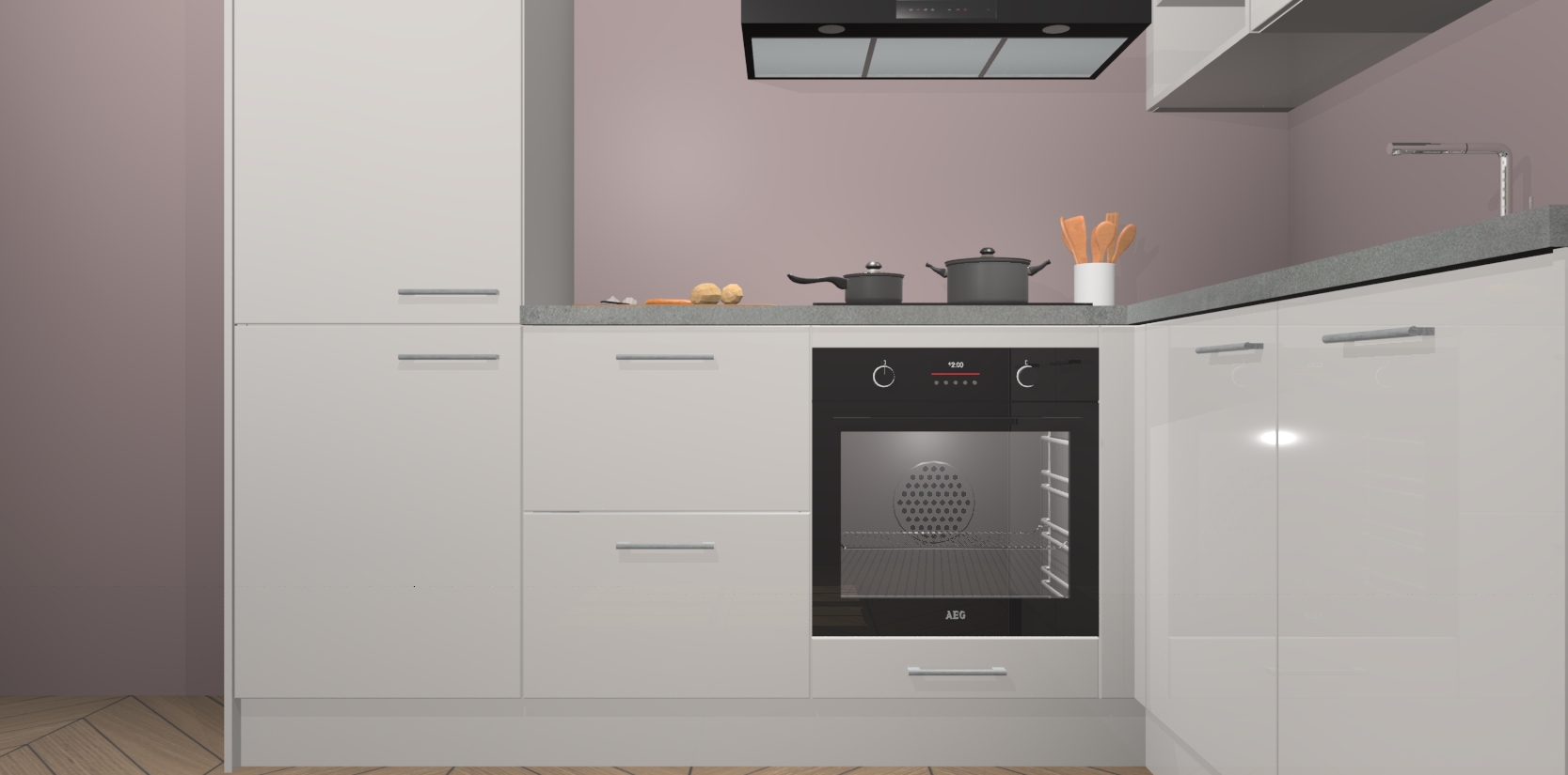 Dit model biedt u voldoende opbergruimte en vijf ingebouwde apparaten: een oven, inductiekookplaat, afzuigkap, vaatwasser en koelkast. Deze apparaten kunnen gemakkelijk worden geüpgrade naar AEG nadat u besteld heeft. De verschillende laden en kastjes bevatten softclose-deuren waardoor ze gezellig dichtvallen met een geruststellend helemaal geruisloos geluid. En dat is nog niet alles! We garanderen ook dat de prijs altijd laag blijft - dus haal nu uw Zijdegrijze hoogglans keuken Krakau terwijl het kan.