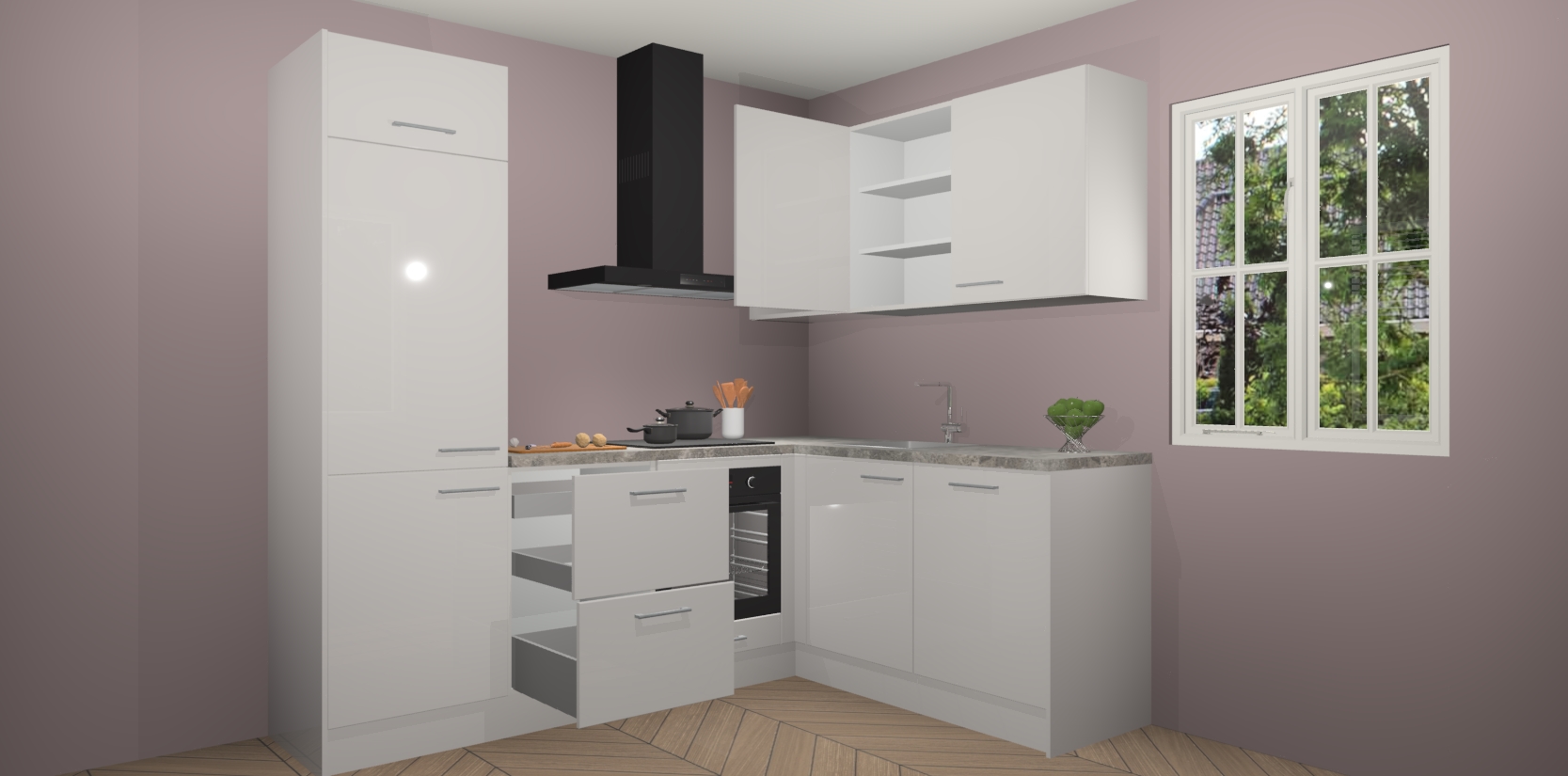 Dit model biedt u voldoende opbergruimte en vijf ingebouwde apparaten: een oven, inductiekookplaat, afzuigkap, vaatwasser en koelkast. Deze apparaten kunnen gemakkelijk worden geüpgrade naar AEG nadat u besteld heeft. De verschillende laden en kastjes bevatten softclose-deuren waardoor ze gezellig dichtvallen met een geruststellend helemaal geruisloos geluid. En dat is nog niet alles! We garanderen ook dat de prijs altijd laag blijft - dus haal nu uw Zijdegrijze hoogglans keuken Krakau terwijl het kan.