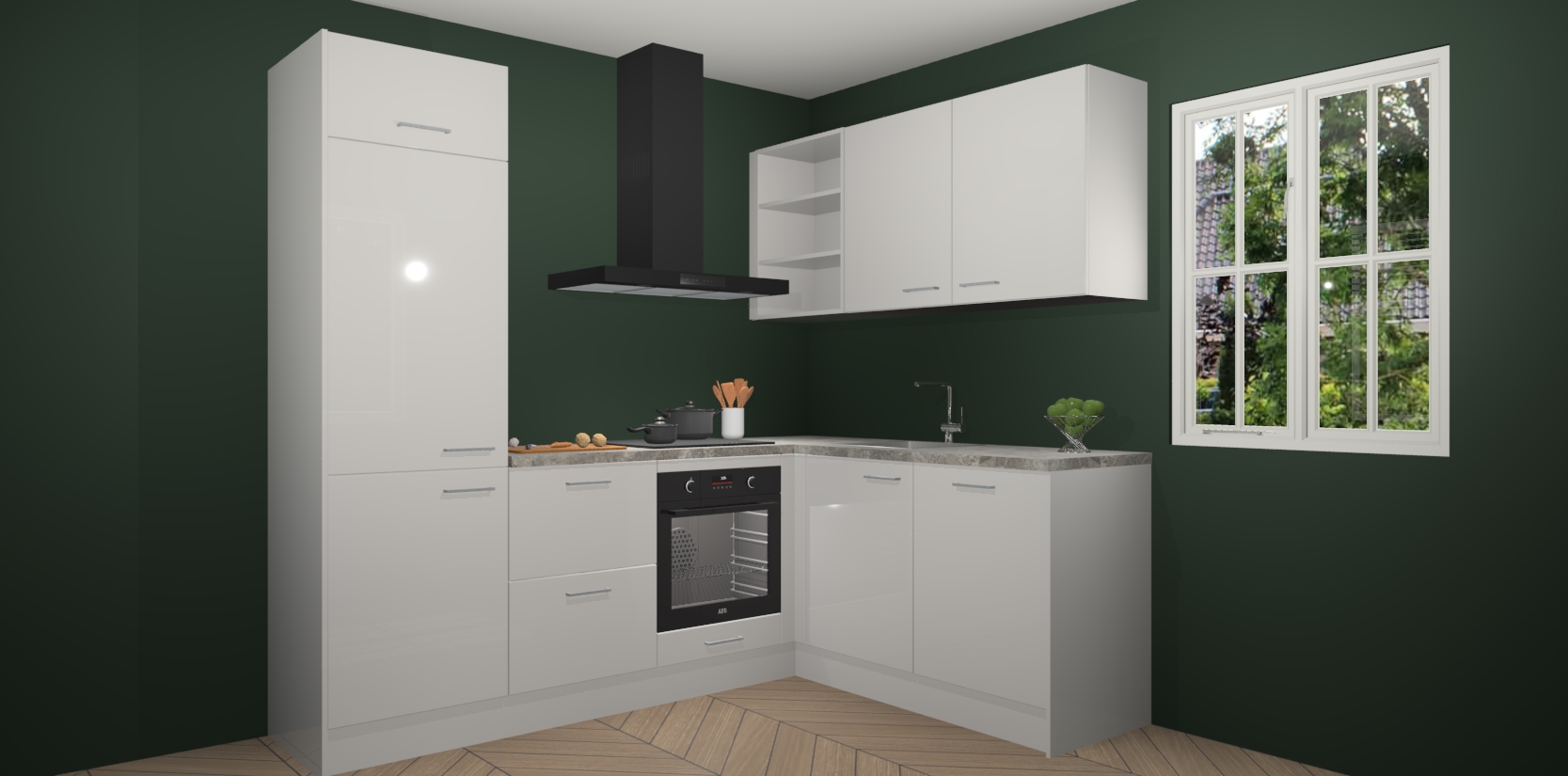 Dit model biedt u voldoende opbergruimte en vijf ingebouwde apparaten: een oven, inductiekookplaat, afzuigkap, vaatwasser en koelkast. Deze apparaten kunnen gemakkelijk worden geüpgrade naar AEG nadat u besteld heeft. De verschillende laden en kastjes bevatten softclose-deuren waardoor ze gezellig dichtvallen met een geruststellend helemaal geruisloos geluid. En dat is nog niet alles! We garanderen ook dat de prijs altijd laag blijft - dus haal nu uw Zijdegrijze hoogglans keuken Krakau terwijl het kan.