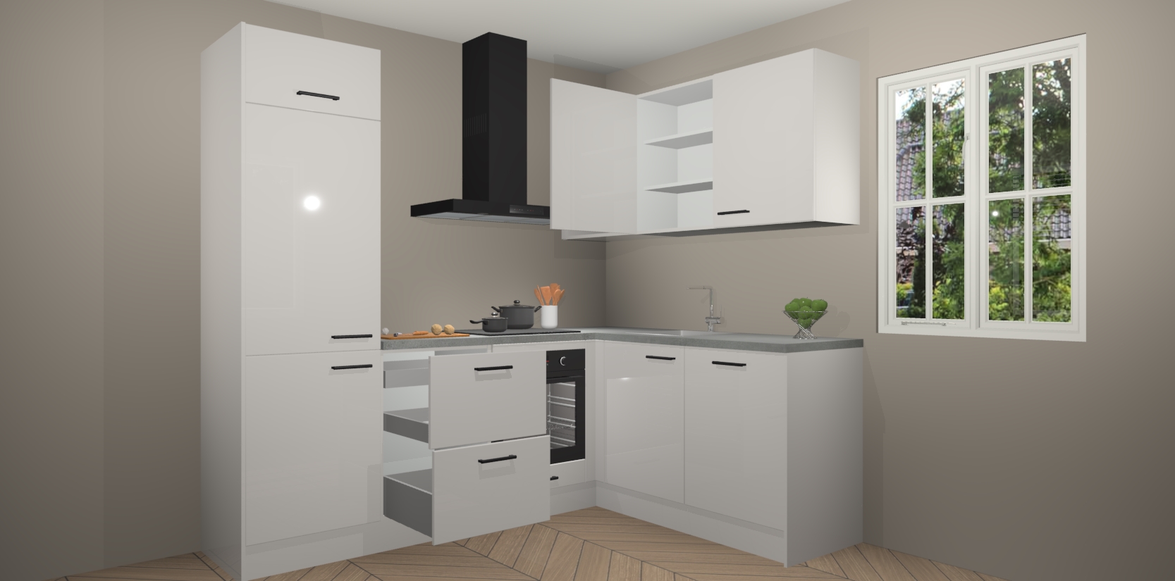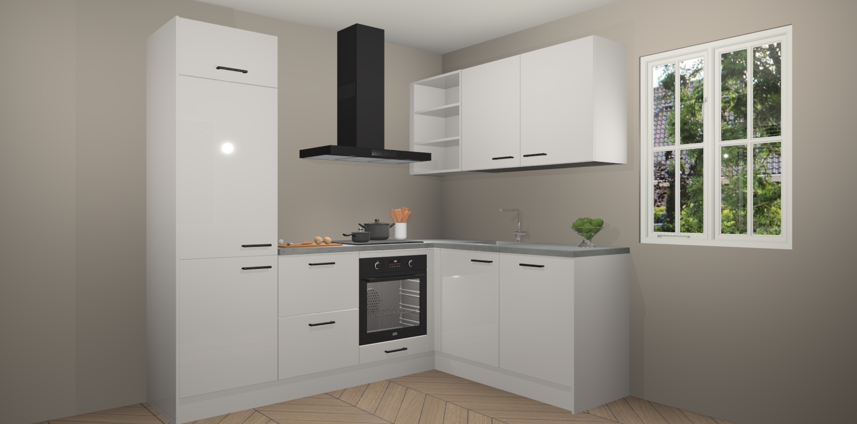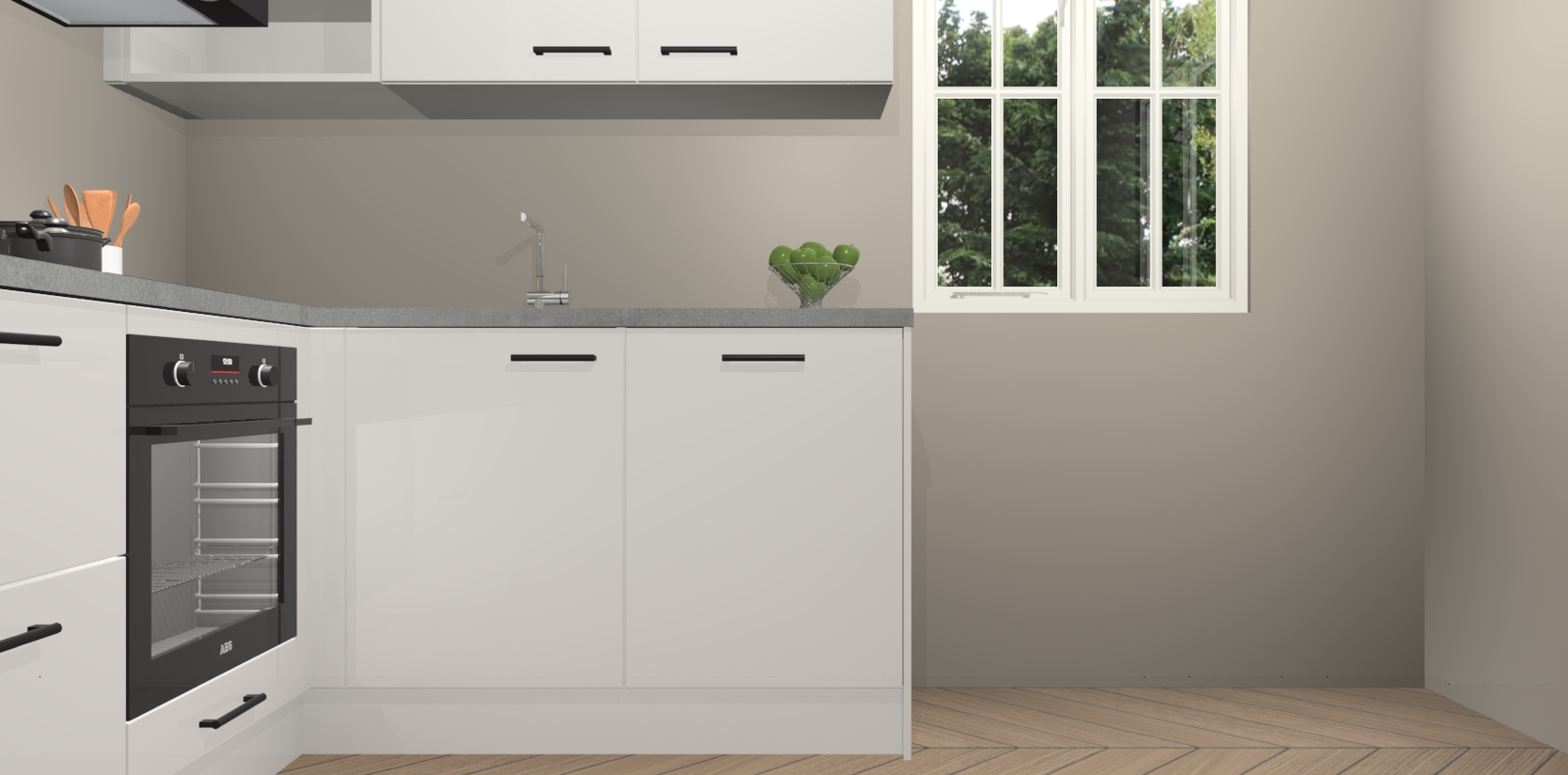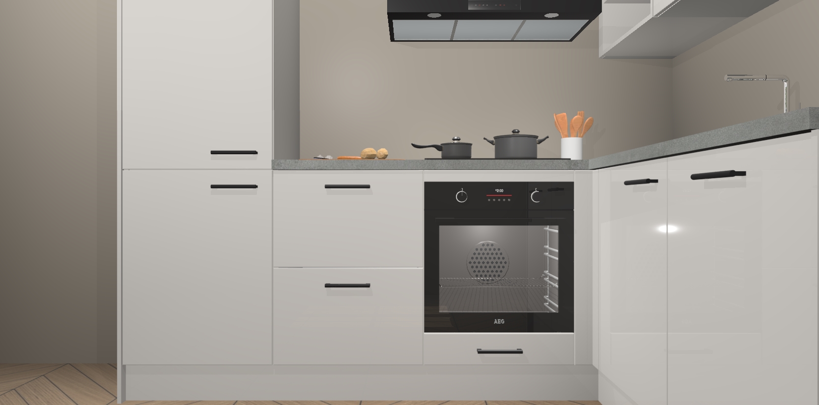 Dit model biedt u voldoende opbergruimte en vijf ingebouwde apparaten: een oven, inductiekookplaat, afzuigkap, vaatwasser en koelkast. Deze apparaten kunnen gemakkelijk worden geüpgrade naar AEG nadat u besteld heeft. De verschillende laden en kastjes bevatten softclose-deuren waardoor ze gezellig dichtvallen met een geruststellend helemaal geruisloos geluid. En dat is nog niet alles! We garanderen ook dat de prijs altijd laag blijft - dus haal nu uw Zijdegrijze hoogglans keuken Krakau terwijl het kan.