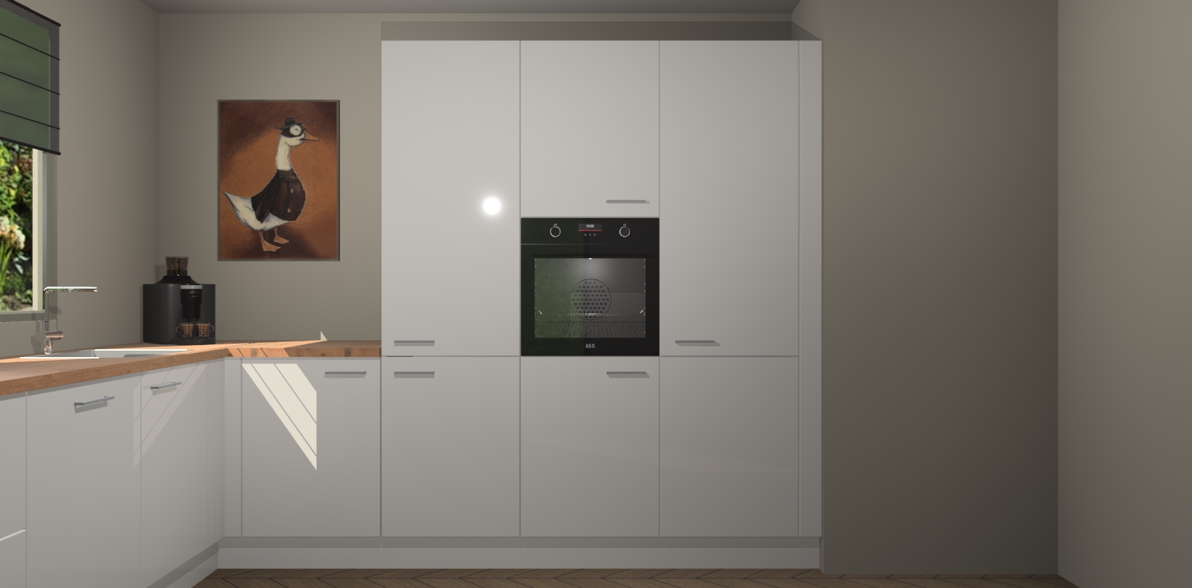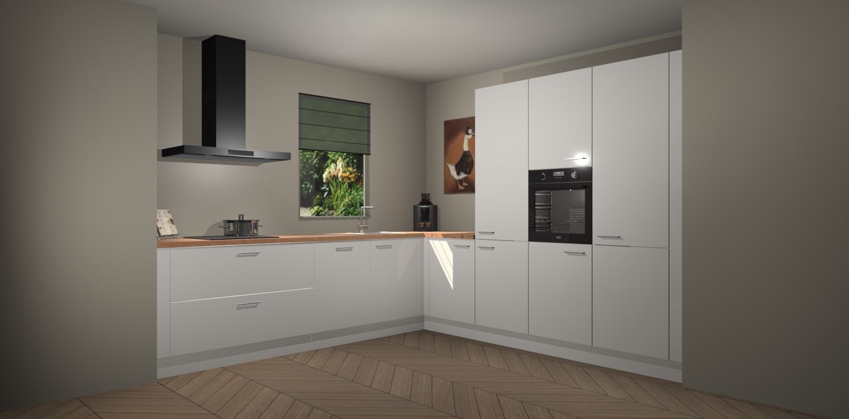 Welkom bij de Zijdegrijze hoogglans keuken Laos. Deze prachtige keuken zal de komende jaren het middelpunt van de belangstelling in uw huis zijn. Uitgerust met vijf inbouwapparaten komt u nooit kookgereedschap tekort. Bovendien geeft de warme houtlook elke ruimte een uitnodigende en tijdloze uitstraling.