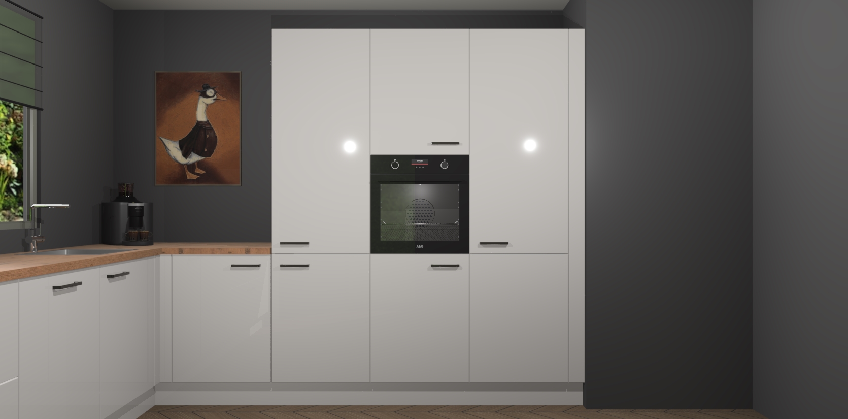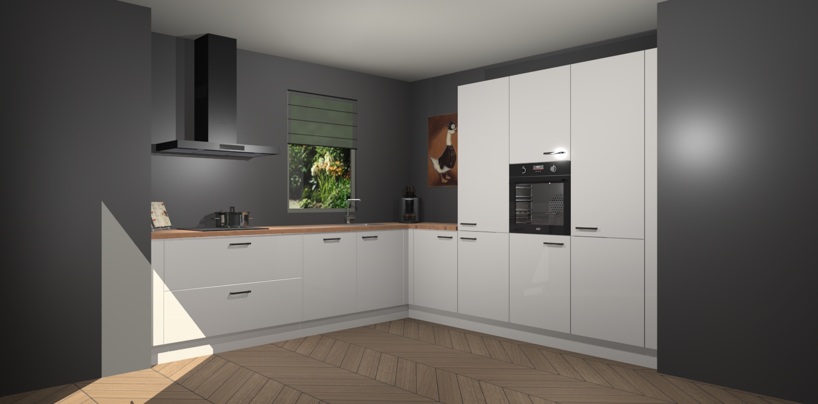 Welkom bij de Zijdegrijze hoogglans keuken Laos. Deze prachtige keuken zal de komende jaren het middelpunt van de belangstelling in uw huis zijn. Uitgerust met vijf inbouwapparaten komt u nooit kookgereedschap tekort. Bovendien geeft de warme houtlook elke ruimte een uitnodigende en tijdloze uitstraling.