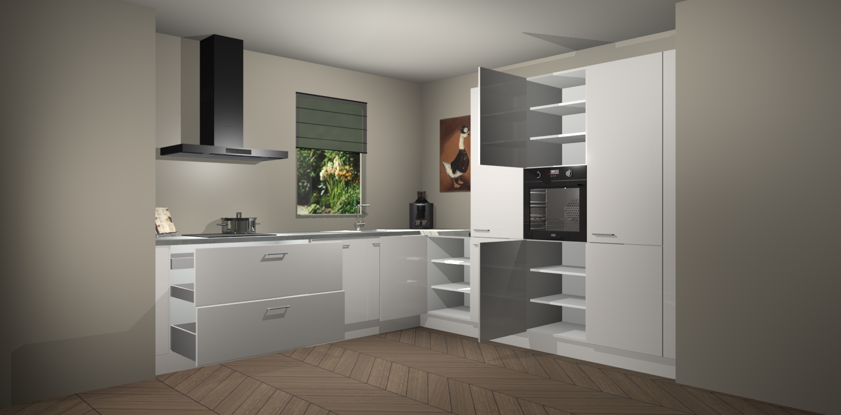 Welkom bij de Zijdegrijze hoogglans keuken Laos. Deze prachtige keuken zal de komende jaren het middelpunt van de belangstelling in uw huis zijn. Uitgerust met vijf inbouwapparaten komt u nooit kookgereedschap tekort. Bovendien geeft de warme houtlook elke ruimte een uitnodigende en tijdloze uitstraling.
