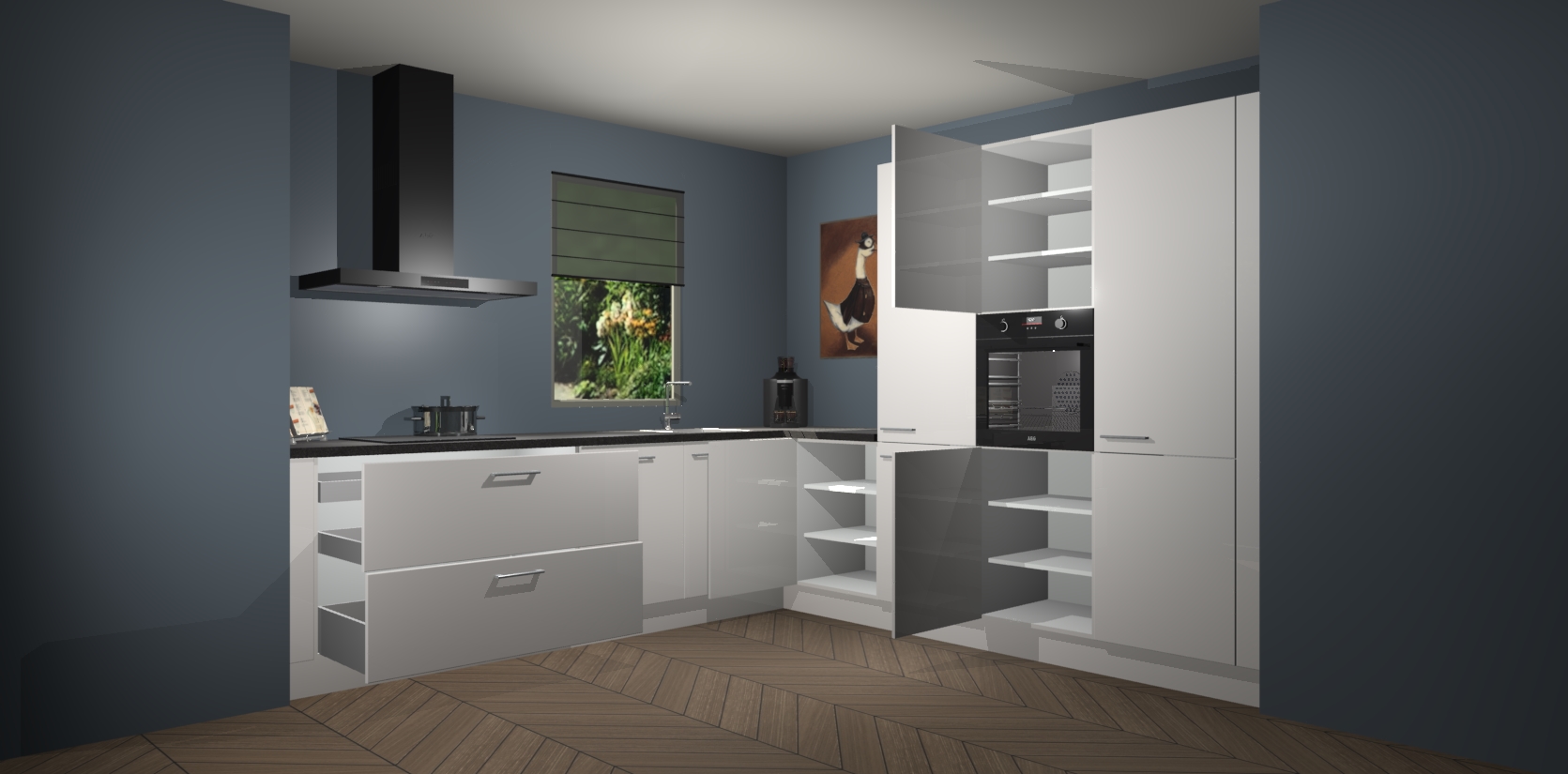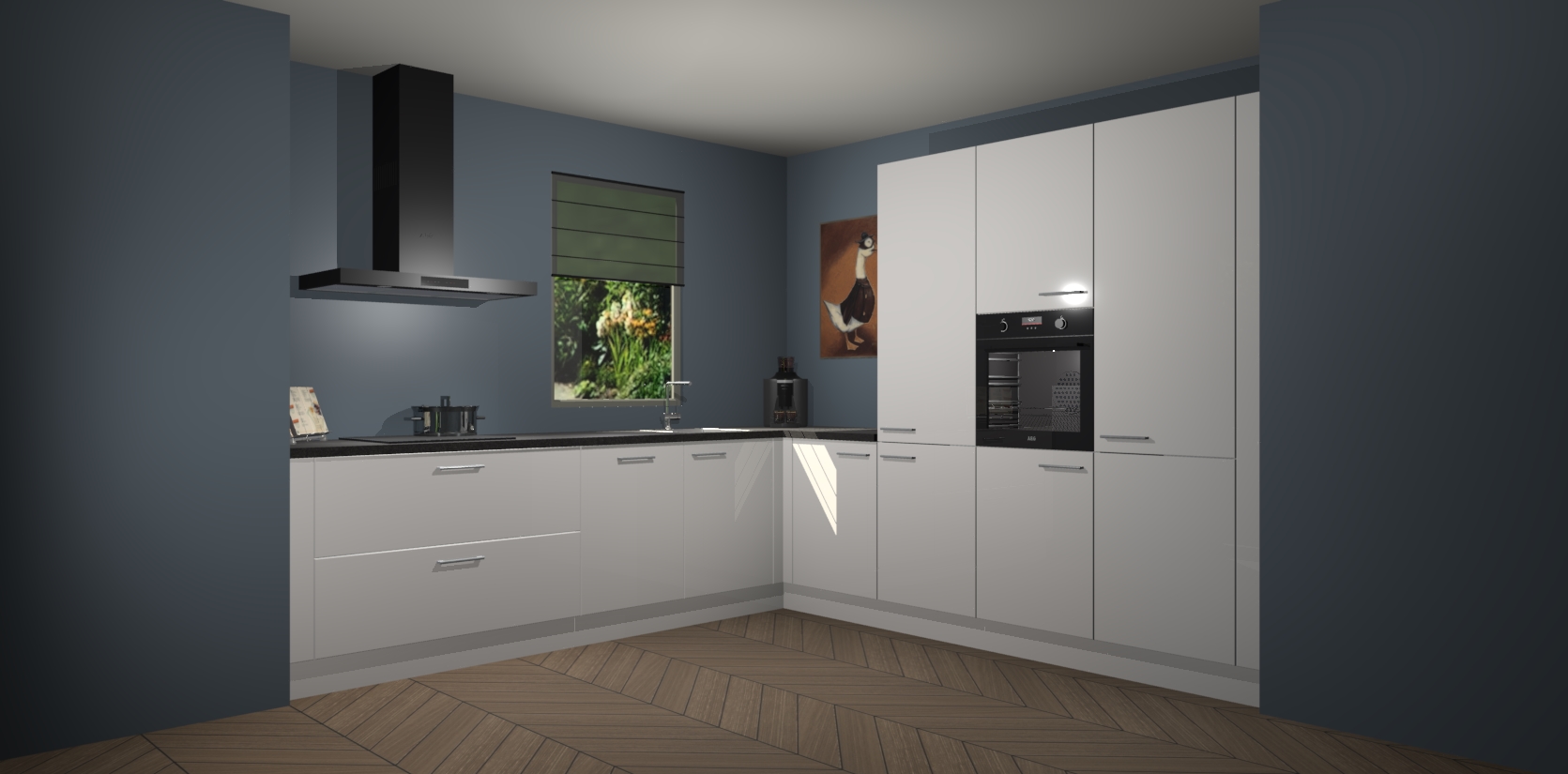 Welkom bij de Zijdegrijze hoogglans keuken Laos. Deze prachtige keuken zal de komende jaren het middelpunt van de belangstelling in uw huis zijn. Uitgerust met vijf inbouwapparaten komt u nooit kookgereedschap tekort. Bovendien geeft de warme houtlook elke ruimte een uitnodigende en tijdloze uitstraling.