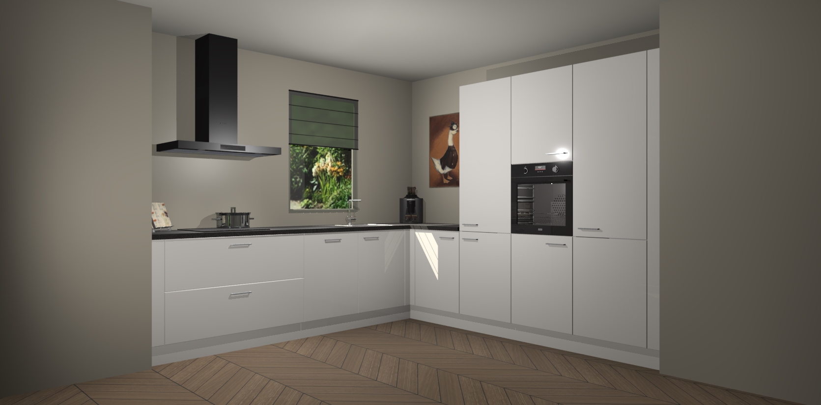 Welkom bij de Zijdegrijze hoogglans keuken Laos. Deze prachtige keuken zal de komende jaren het middelpunt van de belangstelling in uw huis zijn. Uitgerust met vijf inbouwapparaten komt u nooit kookgereedschap tekort. Bovendien geeft de warme houtlook elke ruimte een uitnodigende en tijdloze uitstraling.