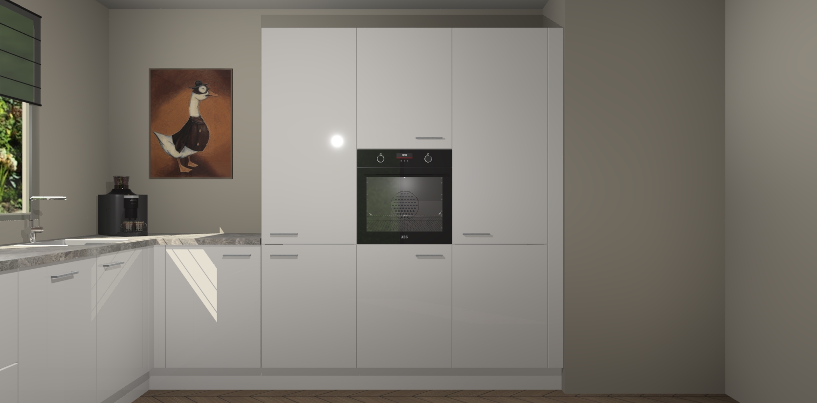 Welkom bij de Zijdegrijze hoogglans keuken Laos. Deze prachtige keuken zal de komende jaren het middelpunt van de belangstelling in uw huis zijn. Uitgerust met vijf inbouwapparaten komt u nooit kookgereedschap tekort. Bovendien geeft de warme houtlook elke ruimte een uitnodigende en tijdloze uitstraling.