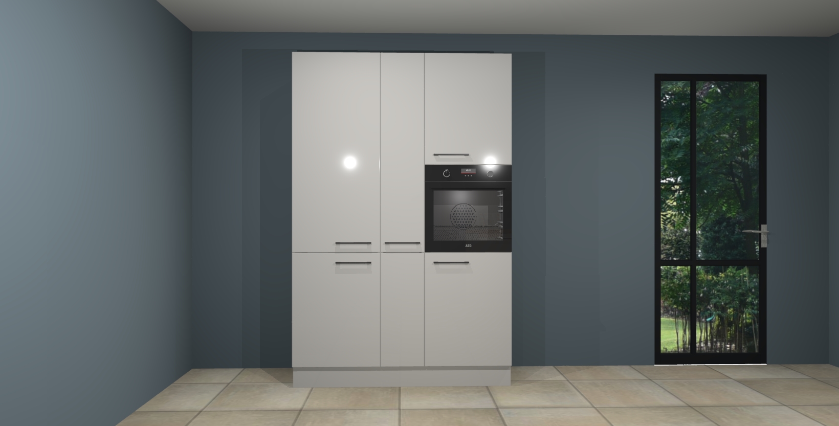 Met een modern, tijdloos design en ruime opslagruimte, zult u zich in no-time thuis voelen in uw nieuwe keuken. Uw leven wordt eenvoudiger met de soft-close deuren die voor het ultieme stille comfort zorgen - geen geluid dat u stoort terwijl u kookt. Ook is de keuken voorzien van 5 ingebouwde apparaten: een oven, inductie kookplaat, afzuigkap, vaatwasser en koelkast. Deze kunnen gemakkelijk na bestelling worden bijgewerkt naar AEG - waardoor uw luxe ervaring compleet is.
